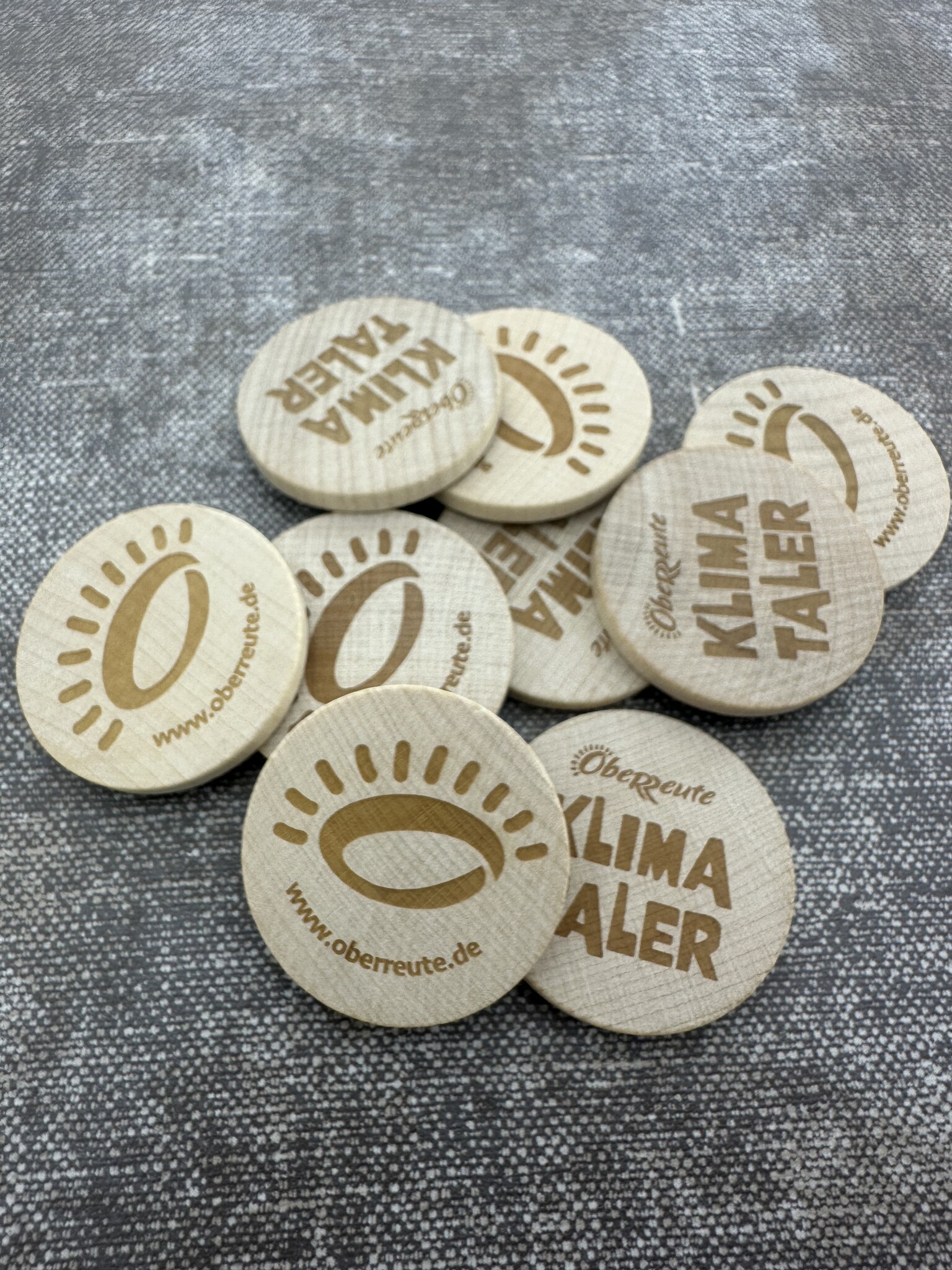 Houten munten met eigen gravering Ø37mm - per 100 stuks