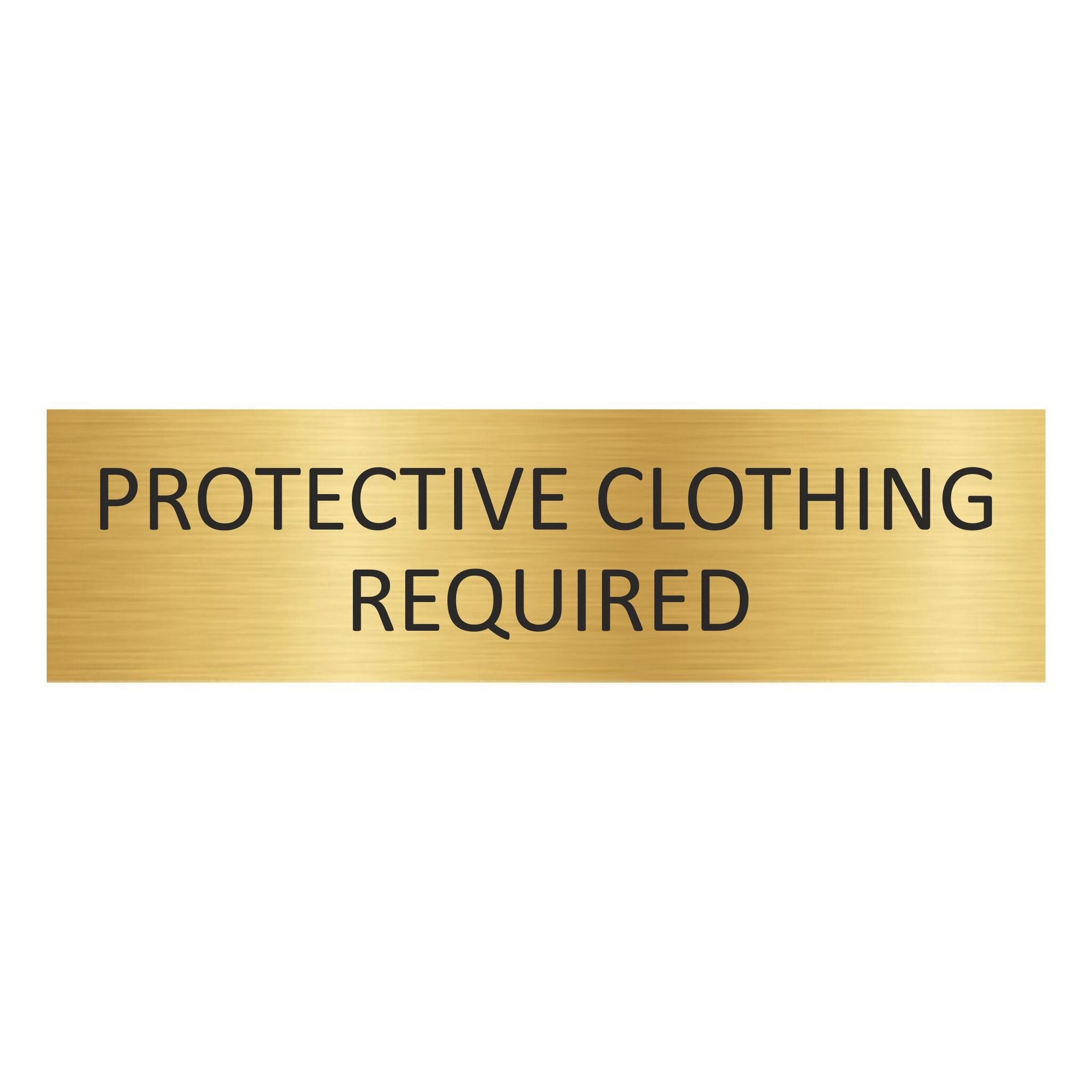 Goud aluminium deurbordje Protective clothing required 165 x 45 mm - per 1 stuk