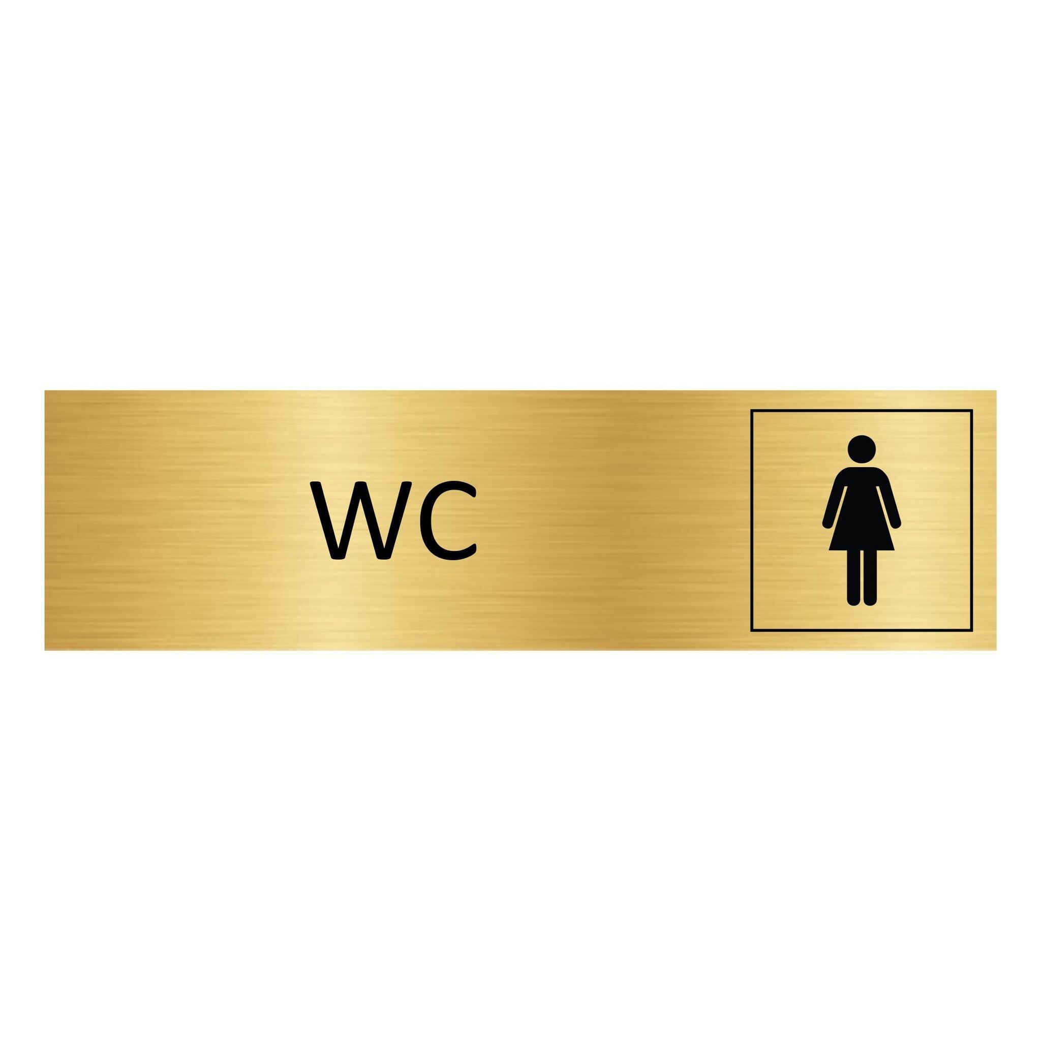 Dames WC bordje gemaakt van goudkleurig aluminium. Het bordje heeft afmetingen van 165 x 45 mm en is 0,5 mm dik. Voorzien van dubbelzijdige tape, voor makkelijke bevestiging op deuren of aan muren. Geschikt voor binnen en buiten. Verkrijgbaar per 1 stuk.