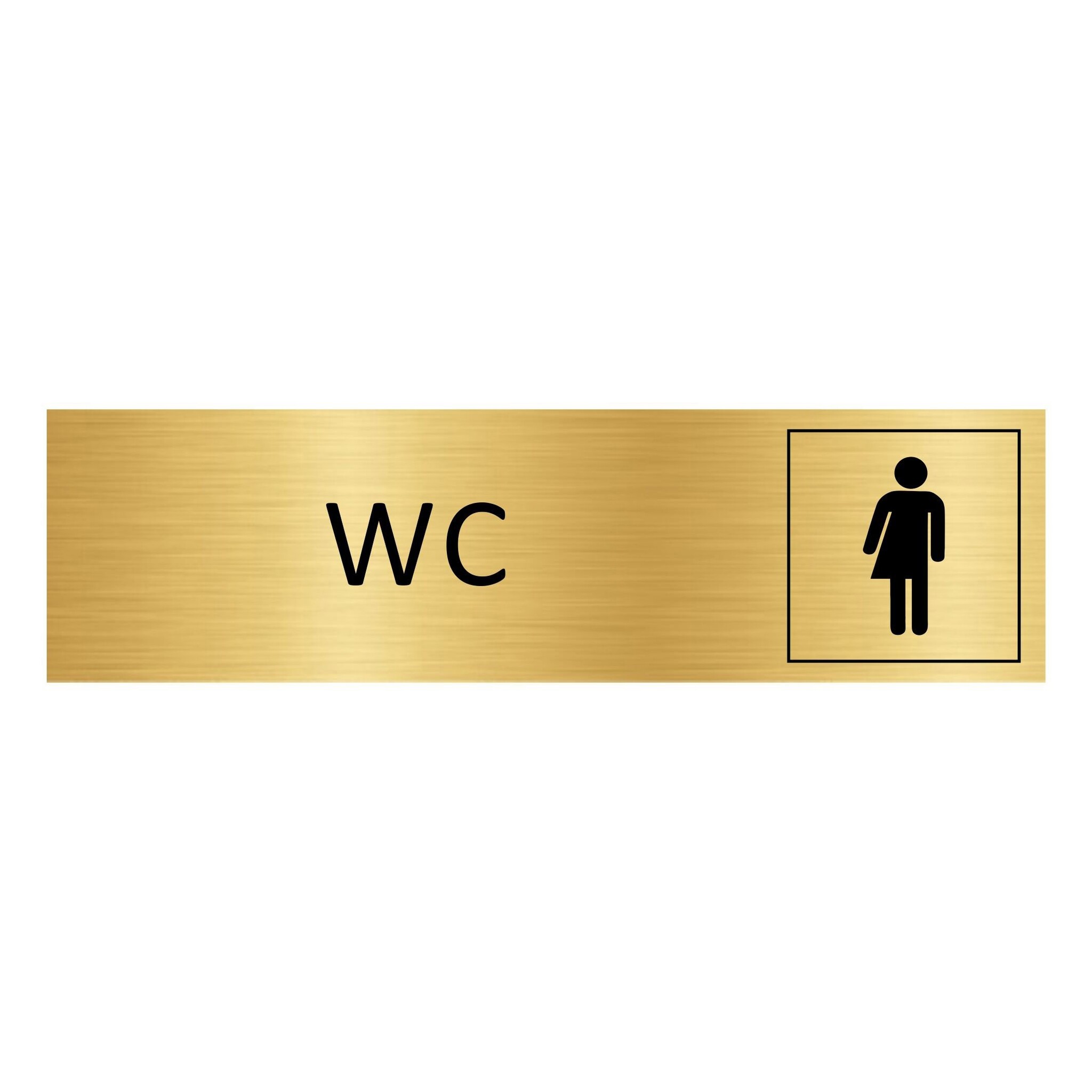 WC genderneutraal deurbordje gemaakt van goudkleurig aluminium. Het bordje heeft afmetingen van 165 x 45 mm en is 0,5 mm dik. Voorzien van dubbelzijdige tape, voor makkelijke bevestiging op deuren of aan muren. Geschikt voor binnen en buiten. Verkrijgbaar per 1 stuk.