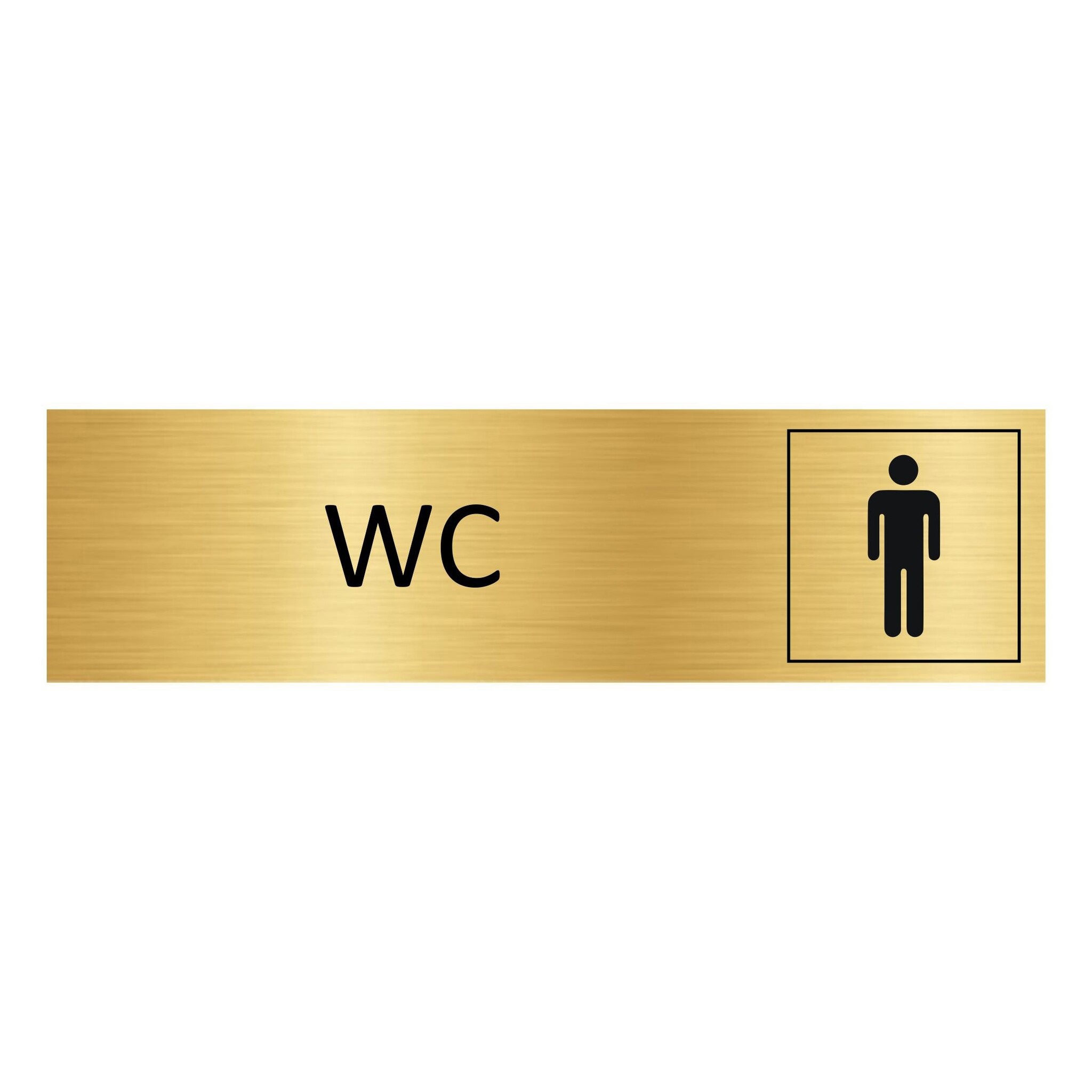 WC heren deurbordje gemaakt van goudkleurig aluminium. Het bordje heeft afmetingen van 165 x 45 mm en is 0,5 mm dik. Voorzien van dubbelzijdige tape, voor makkelijke bevestiging op deuren of aan muren. Geschikt voor binnen en buiten. Verkrijgbaar per 1 stuk.