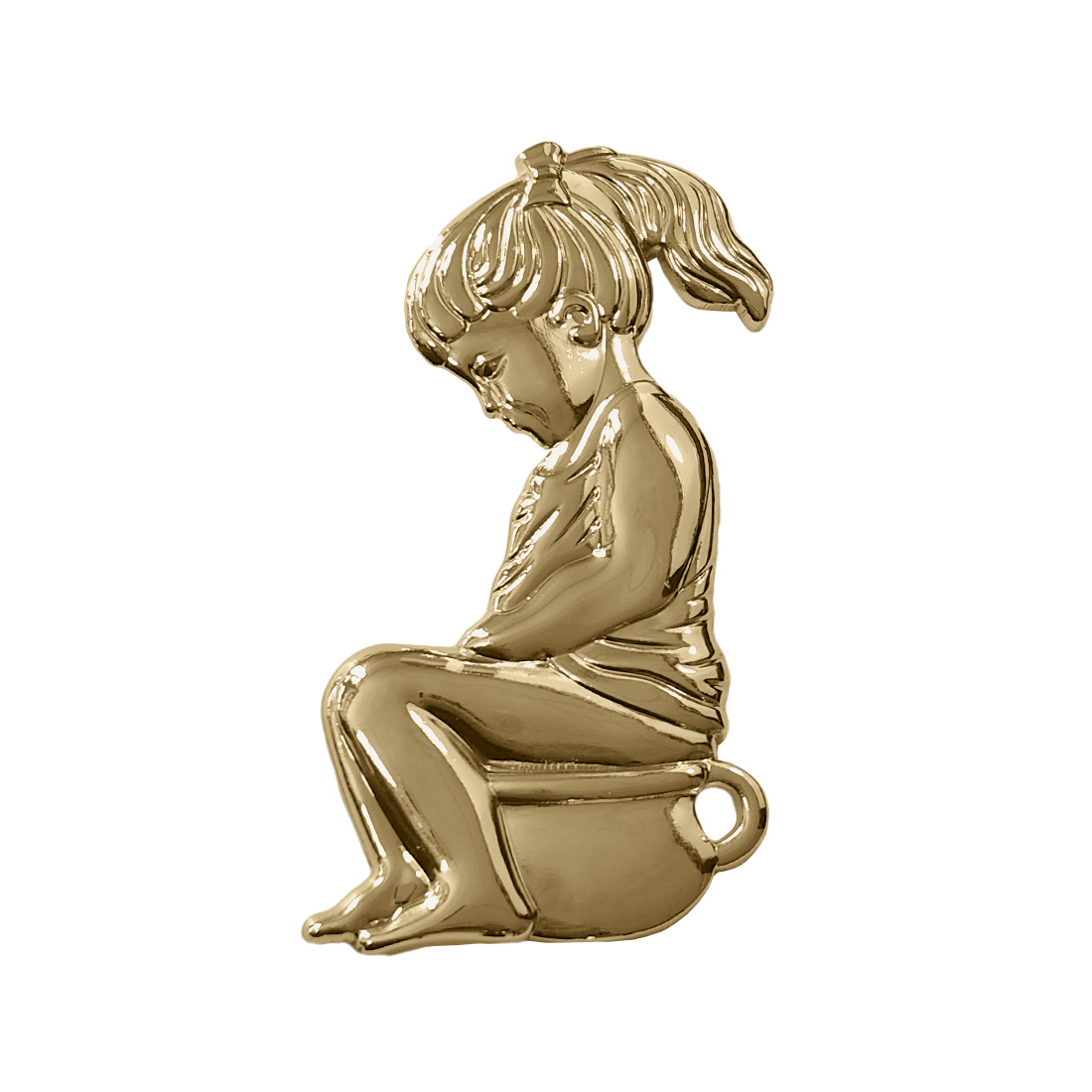 Goudkleurig toiletbordje meisje op potje - per stuk