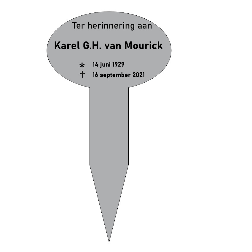 Tijdelijke Grafmarkeringsbordje "Ovall" is een, zoals de naam al zegt, een ovaal of ovaalvormig graf markeringsbordje.