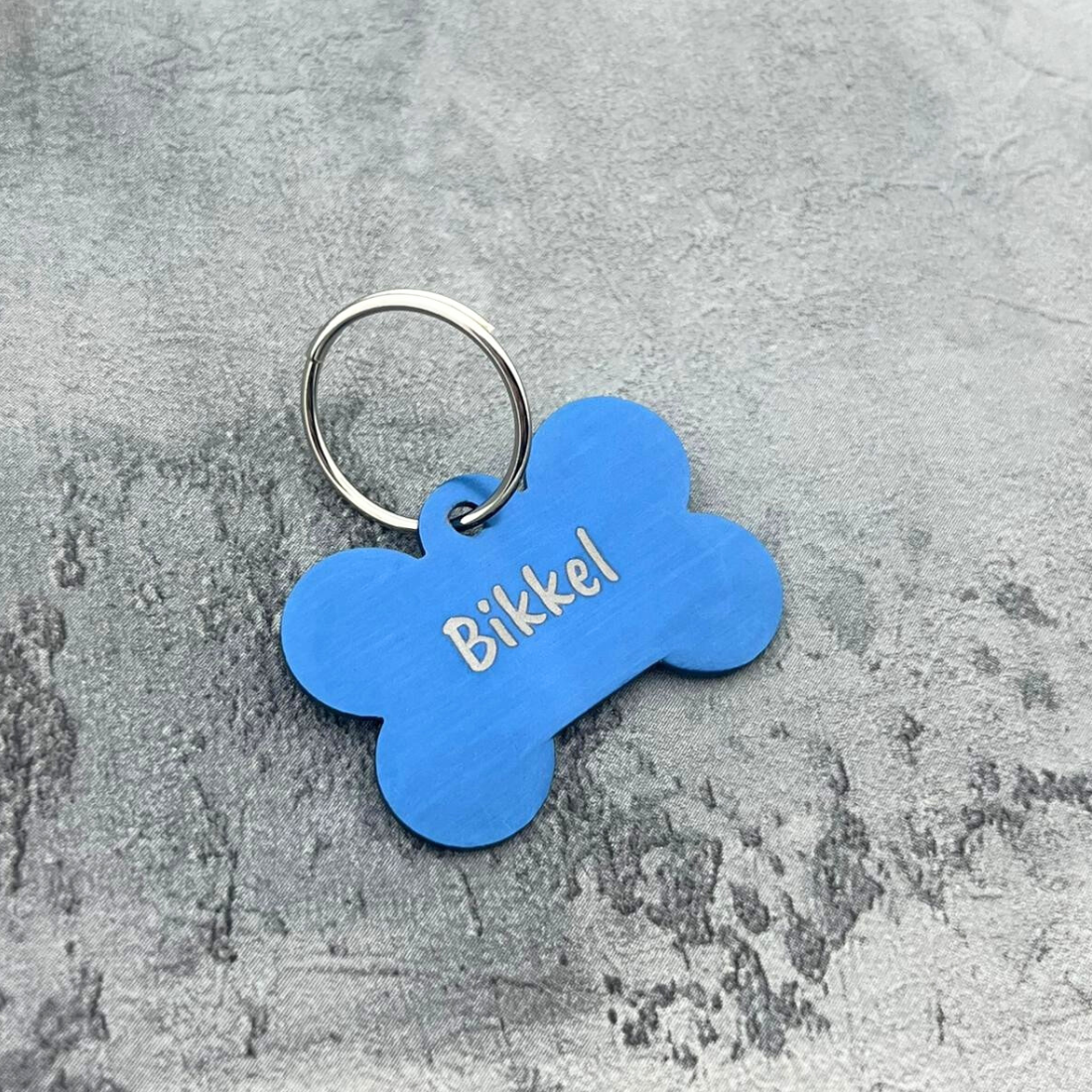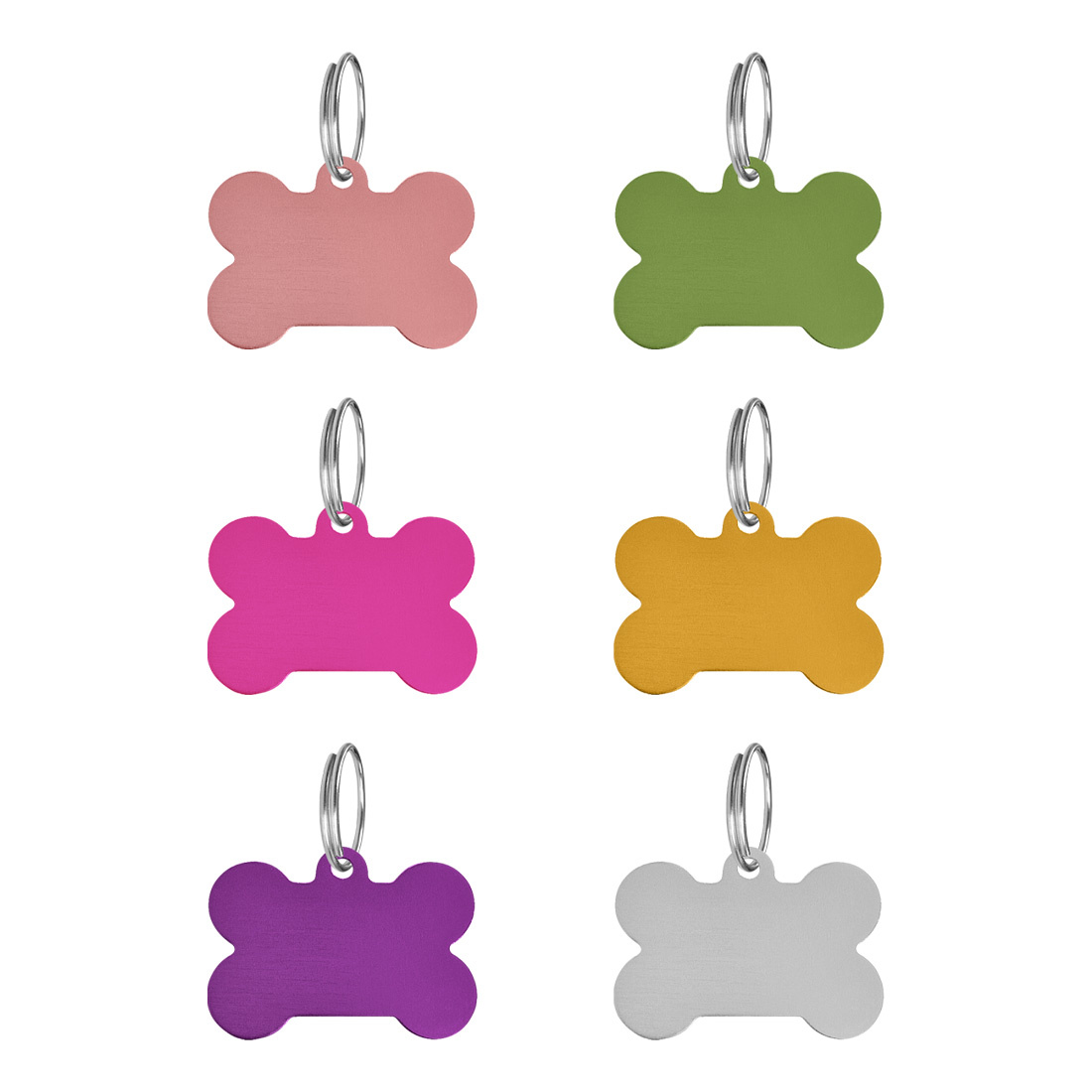 De hondenpenning in de vorm van een botje is gemaakt van aluminium. Het botje is licht van gewicht en heeft afmetingen van 38 x 28 mm en een dikte van 1 mm. Dankzij het grote formaat is deze hondenpenning geschikt voor grote hondenrassen. De penning is voorzien van een sleutelring, waardoor deze eenvoudig aan de halsband bevestigd kan worden. Verkrijgbaar in verschillende kleuren en te bestellen per stuk.