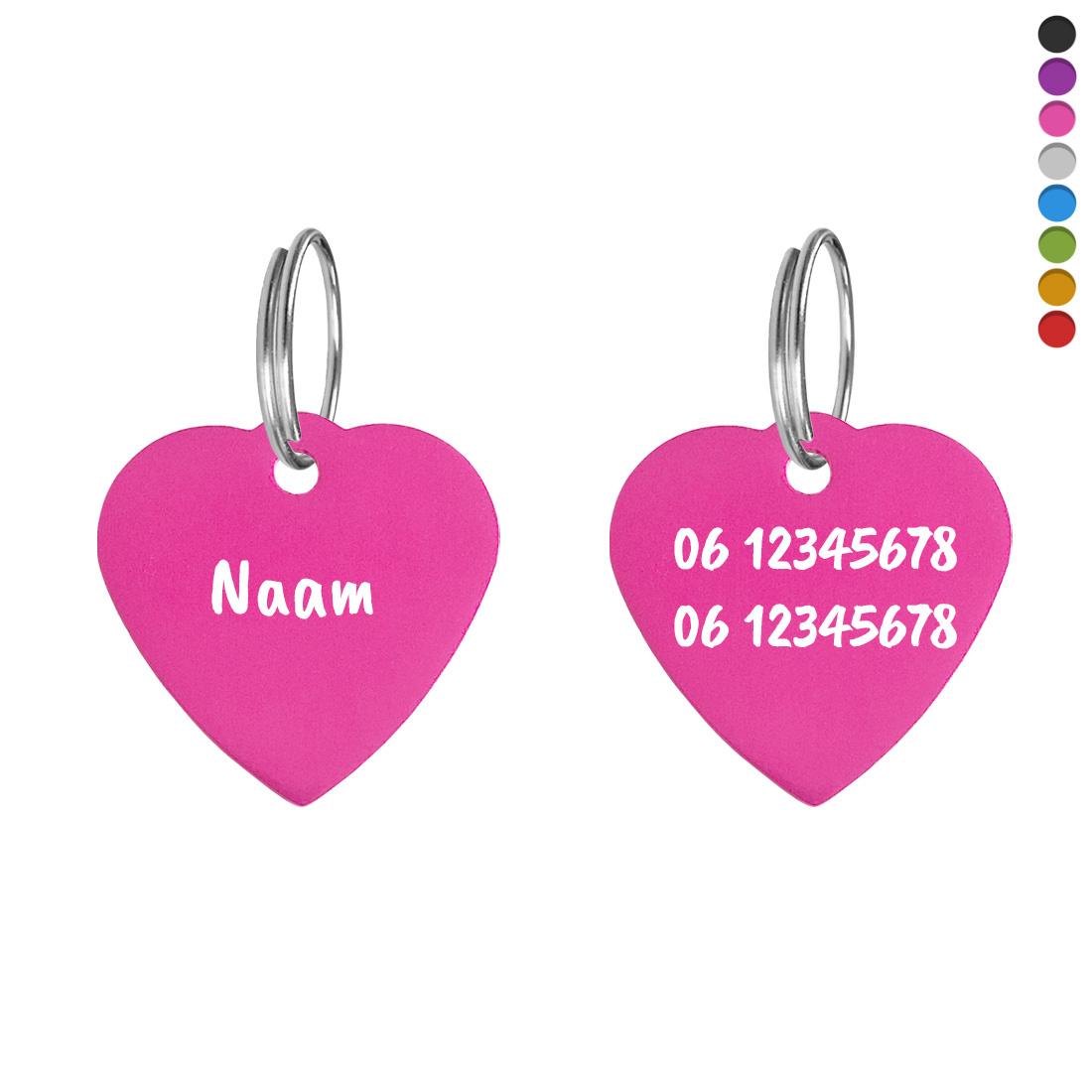 Hondenpenning hartje middel 29x29mm met naam en tekst - per stuk