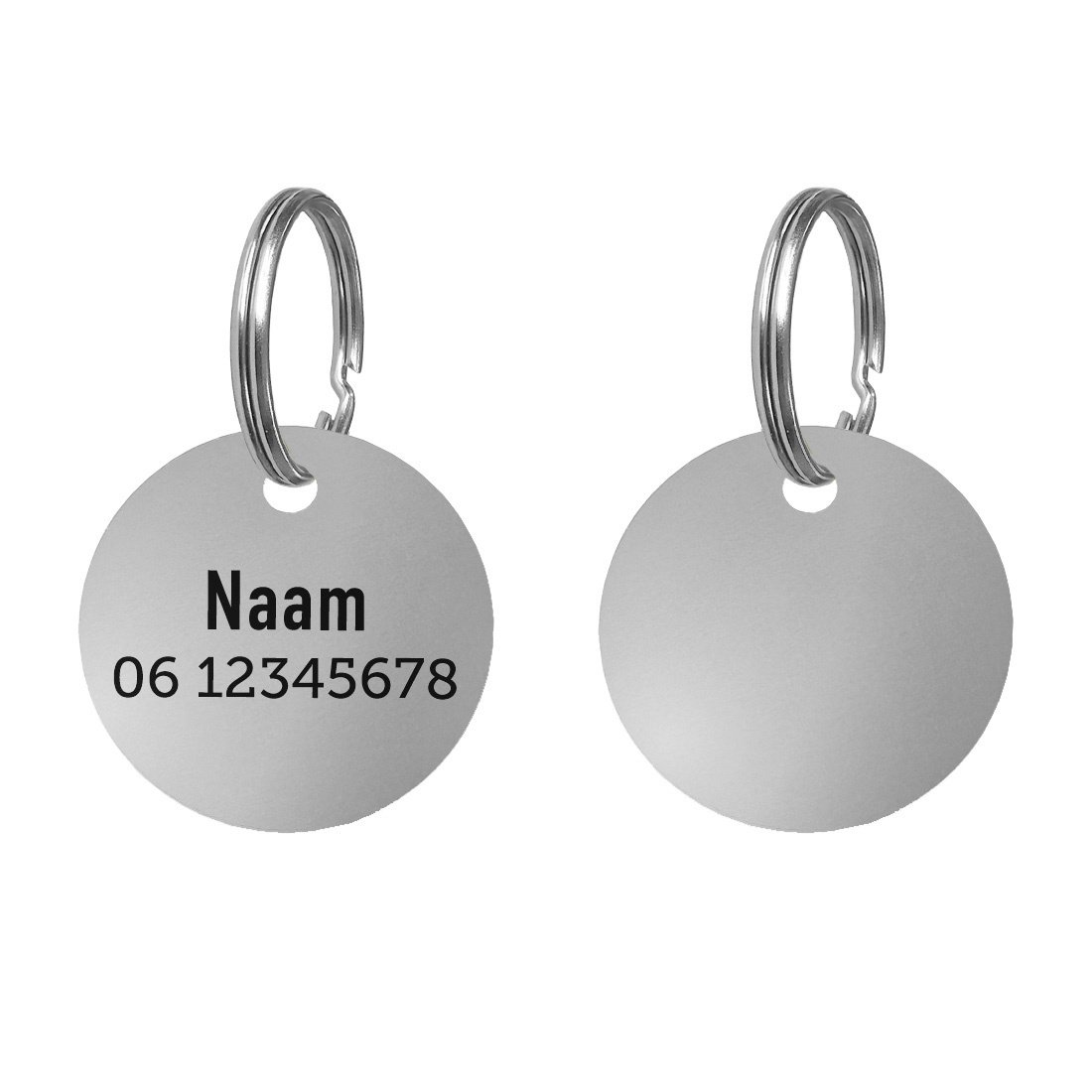 Hondenpenning rvs Ø30mm met naam en telefoonnummer – per stuk