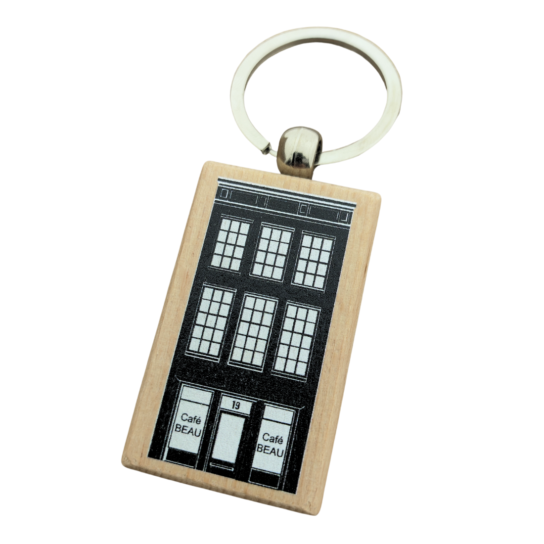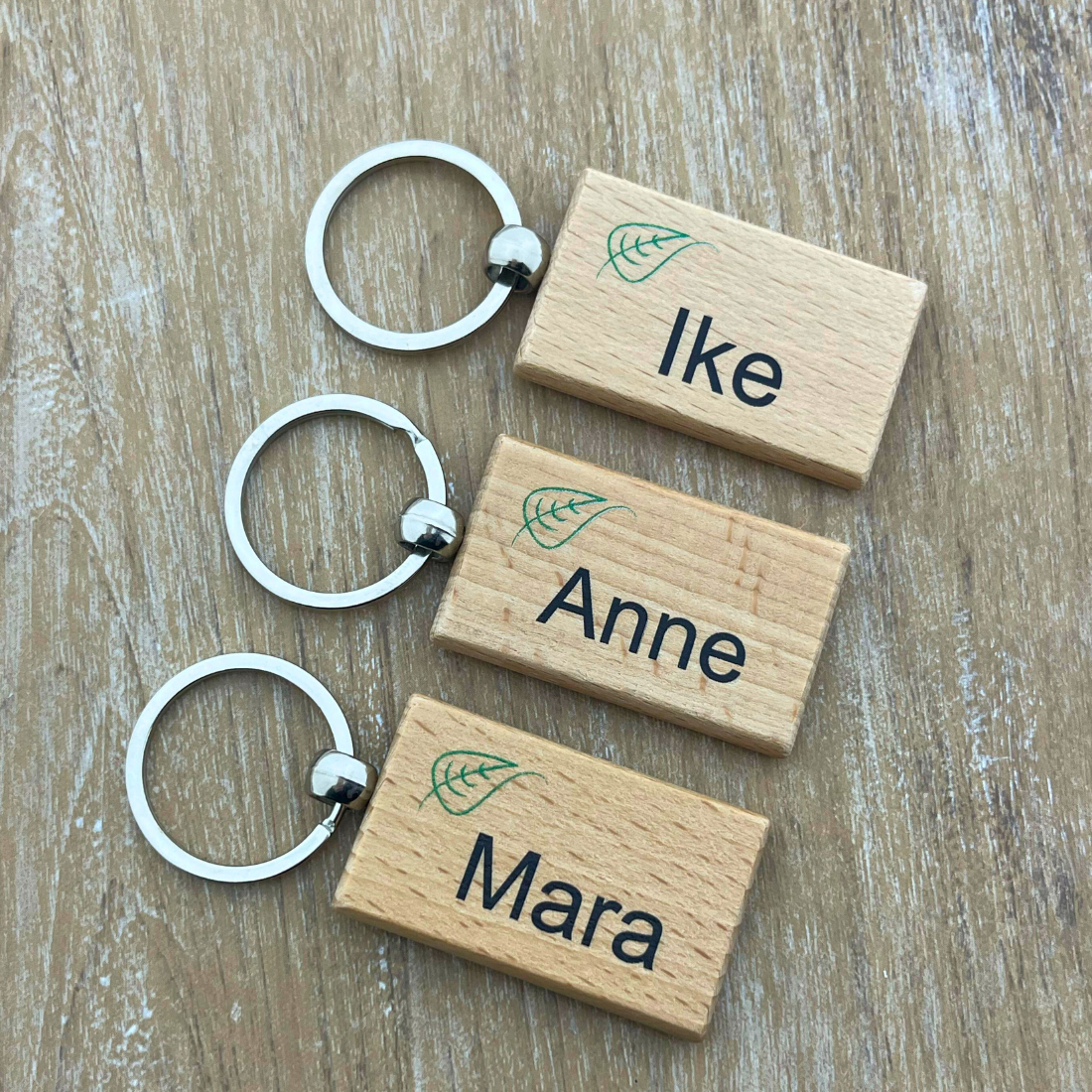 Houten sleutelhanger met logo