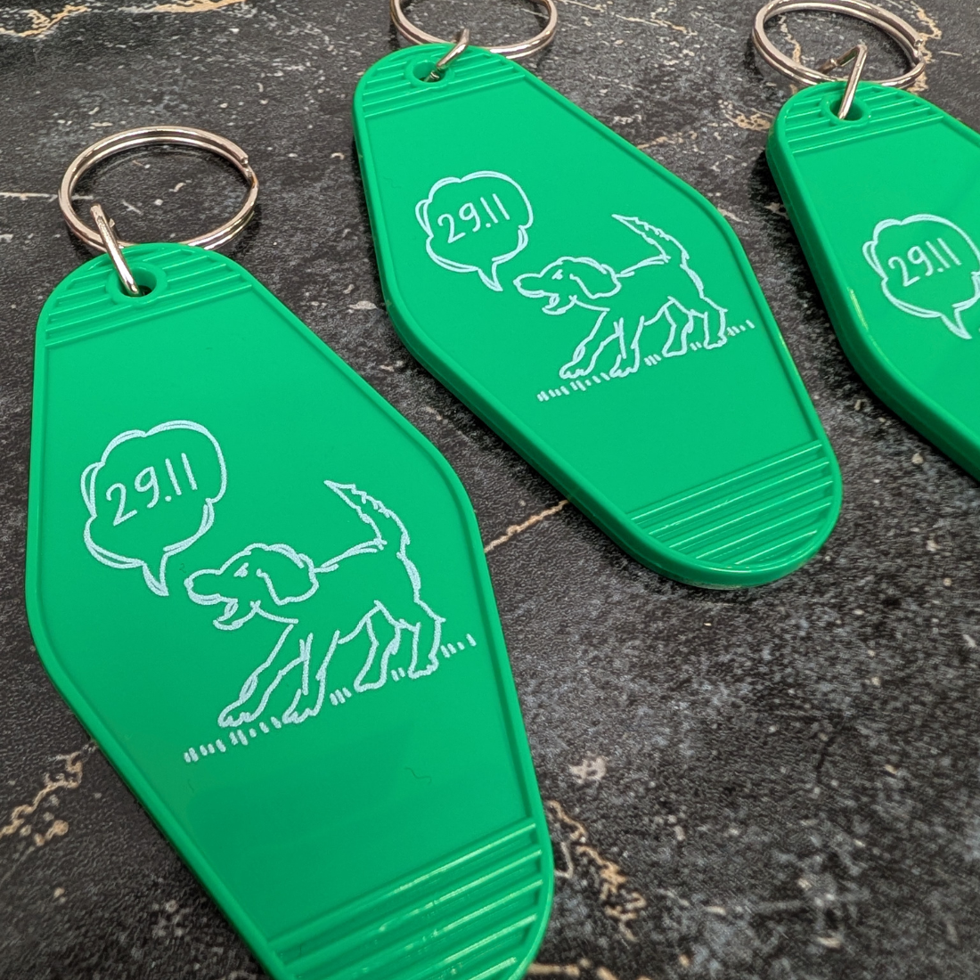 Hotel sleutelhanger Hunter met eigen ontwerp 88x45mm van kunststof - per 1 stuk