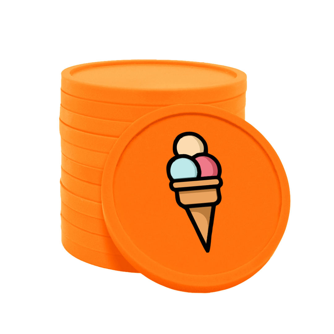 Deze stevige en kleurrijke sorbetijs munten zijn ideaal voor allerlei horecagelegenheden. Denk aan een ijssalon, foodtruck festival of eetgelegenheden op de camping. Dankzij het herkenbare icoon kun je de munt ook internationaal gebruiken.
