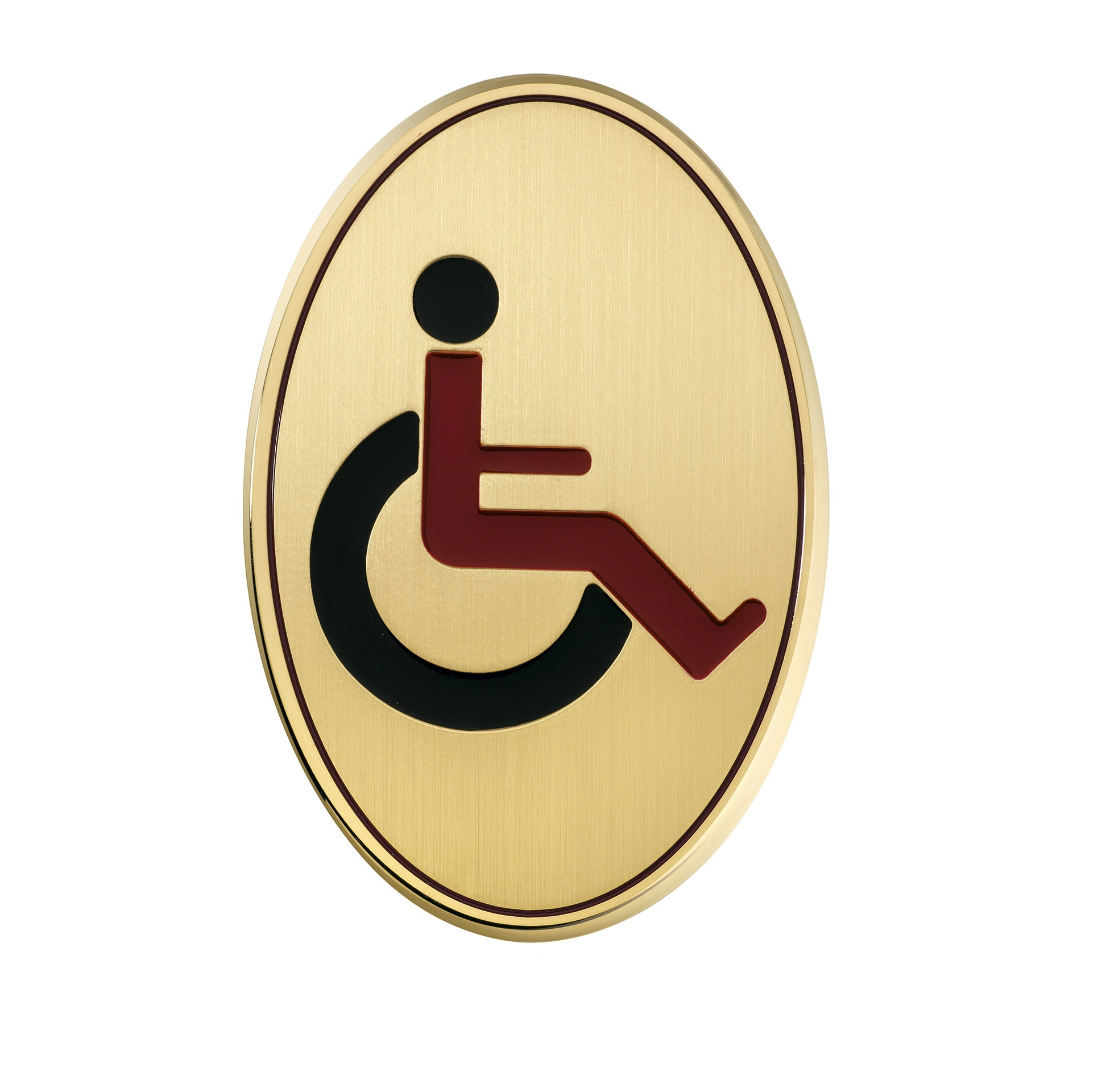 Humphrey's vintage goudkleurig toiletbordje voor rolstoel vriendelijk of invalide toilet. Ook kunnen deze bordjes uitstekend gebruikt worden voor een invalide douche of kleedruimte. Bordjes zijn geïnspireerd op een jaren '20 design en gemaakt van gesatineerd messing met een gepolijste rand. Door een gravering is het rolstoel symbool aangebracht met een fraai emaillen inkleuring.