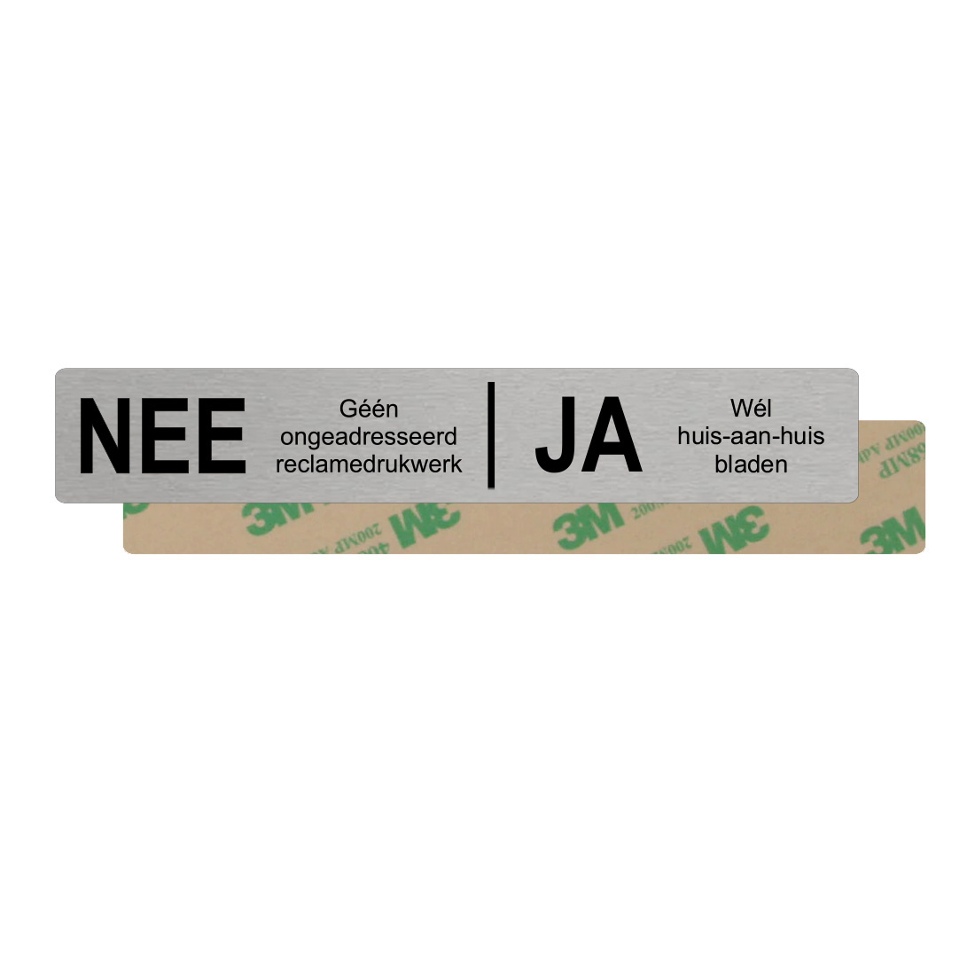 Kunststof deurbordje nee/ja om aan te geven dat je geen reclamefolders wil ontvangen, maar wel huis-aan-huis bladen.. Bordje is voorzien van tape kan op of bij de Brievenbus worden geplakt. Bordjes zijn per stuk te bestellen.