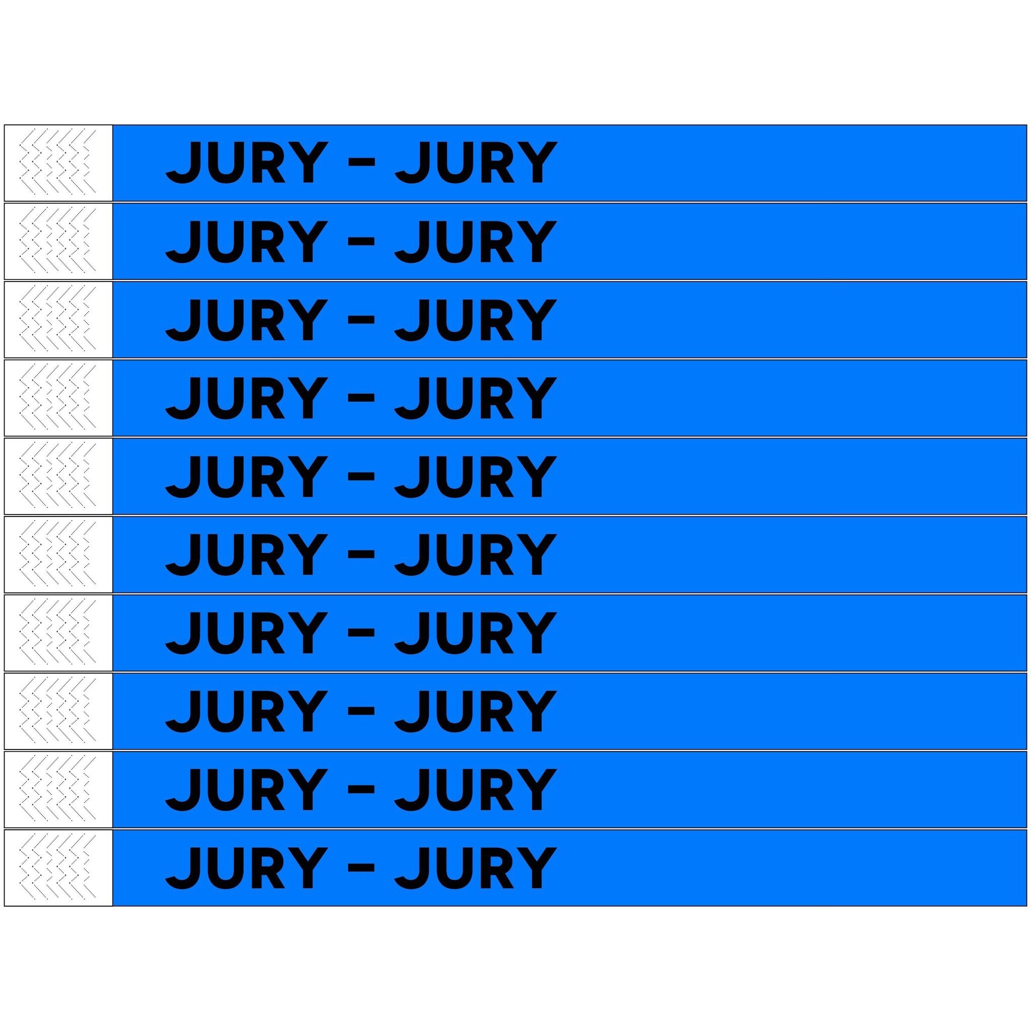 De Tyrex polsbandjes zijn zwart bedrukt met de tekst ‘Jury' en hebben afmetingen van 248 x 19 mm. Ze zijn voorzien van een nummering en een sterke plakstrook met veiligheidsbevestiging. Zowel kinderen als volwassenen kunnen deze polsbandjes dragen. De polsbandjes worden geleverd op vellen, waarbij de bandjes gemakkelijk van elkaar los te scheuren zijn. Je ontvangt 10 vellen met op elk vel 10 bandjes. In totaal ontvang je 100 polsbandjes. Daarnaast is het mogelijk om de bandjes extra te beschrijven met een balpen of een watervaste stift.
