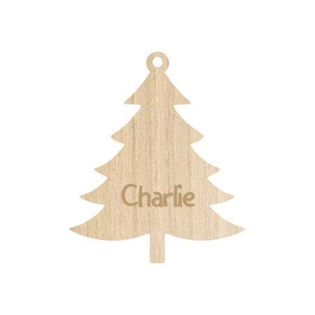 Houten Gepersonaliseerde Kerstbal in de vorm van een kerstboom met jouw naam of kerstwens 85 mm