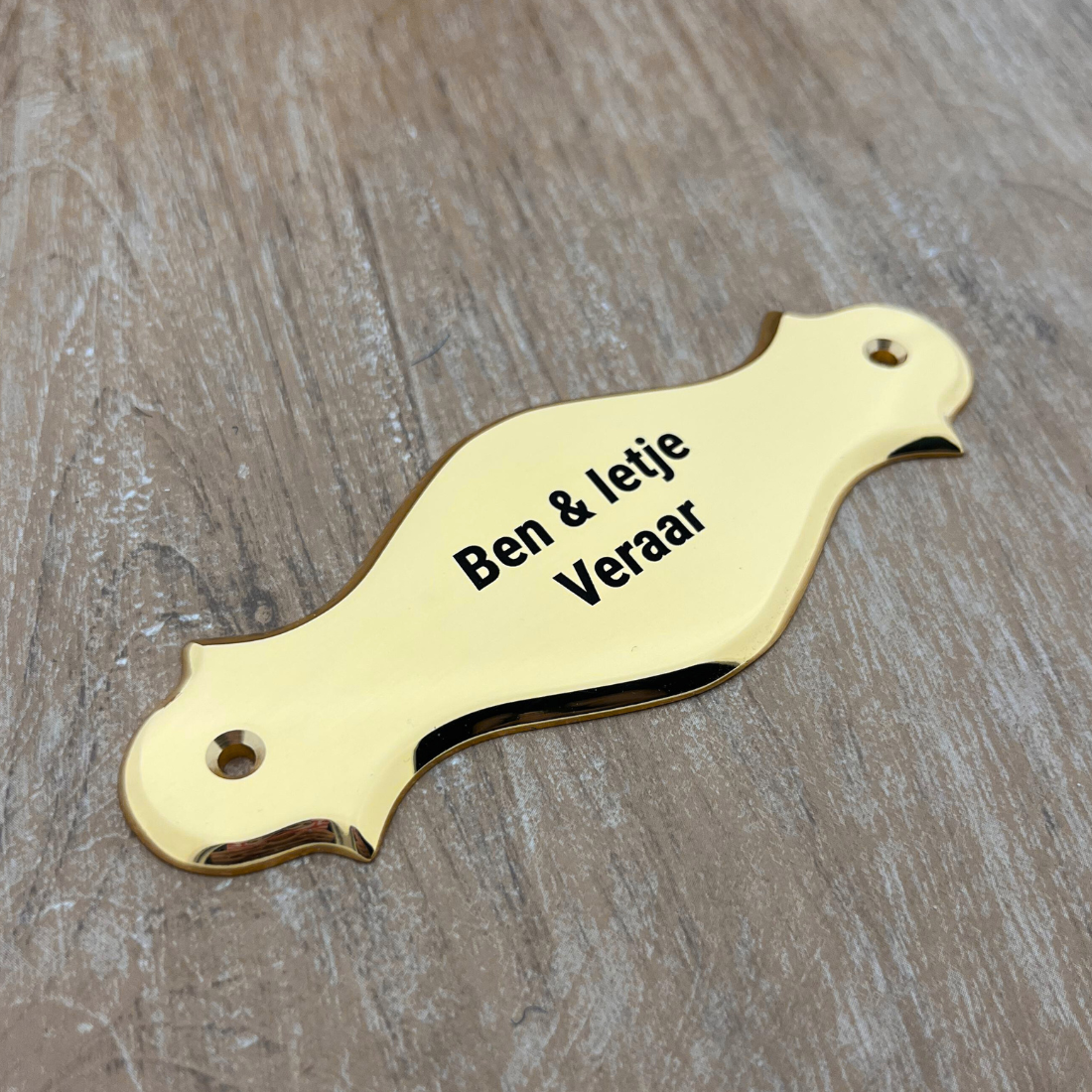 De naambordjes zijn aan beide zijden voorzien van twee verzonken schroefgaten, zodat je het bordje eenvoudig op de gewenste plek kunt bevestigen. Let op: het bordje wordt geleverd zonder schroeven.