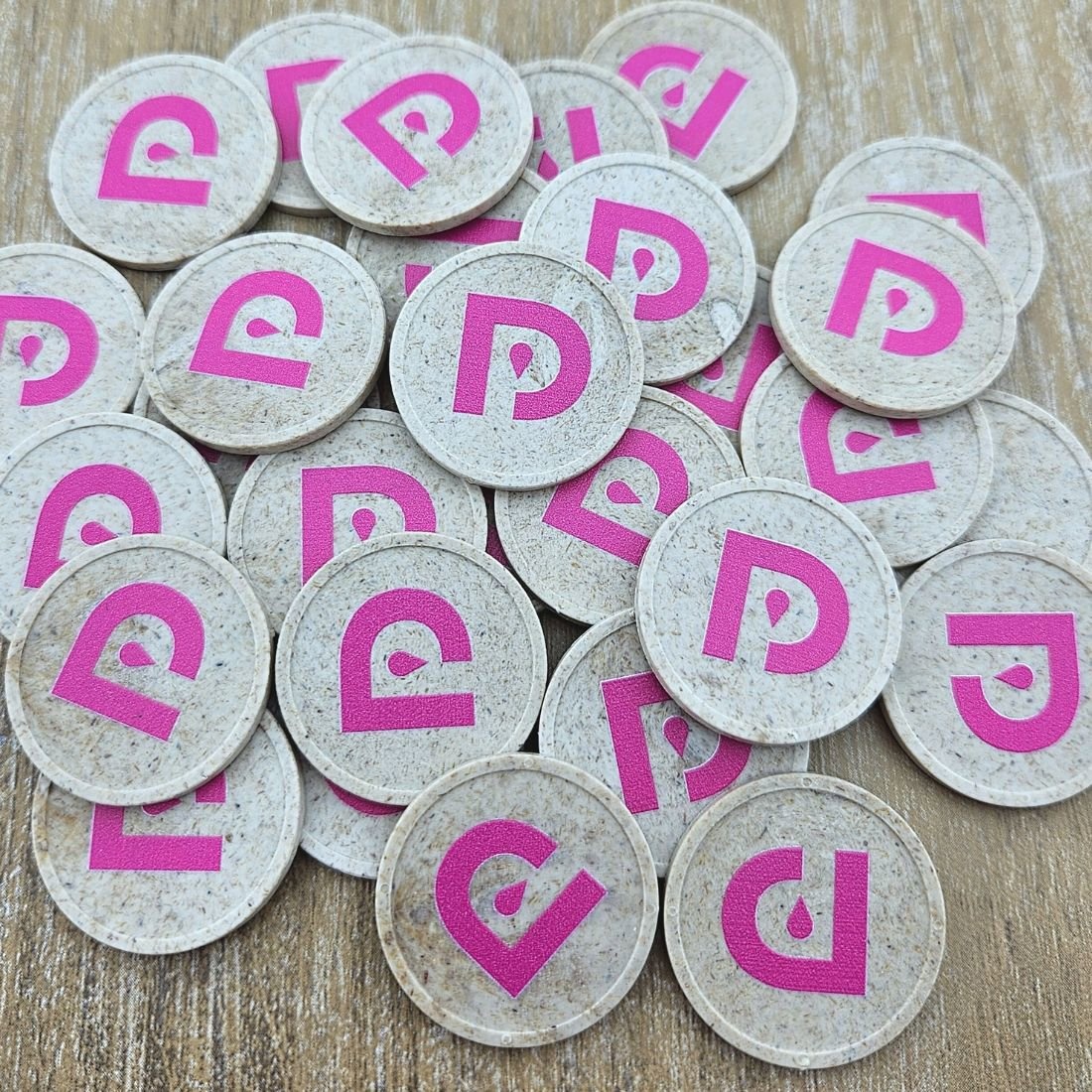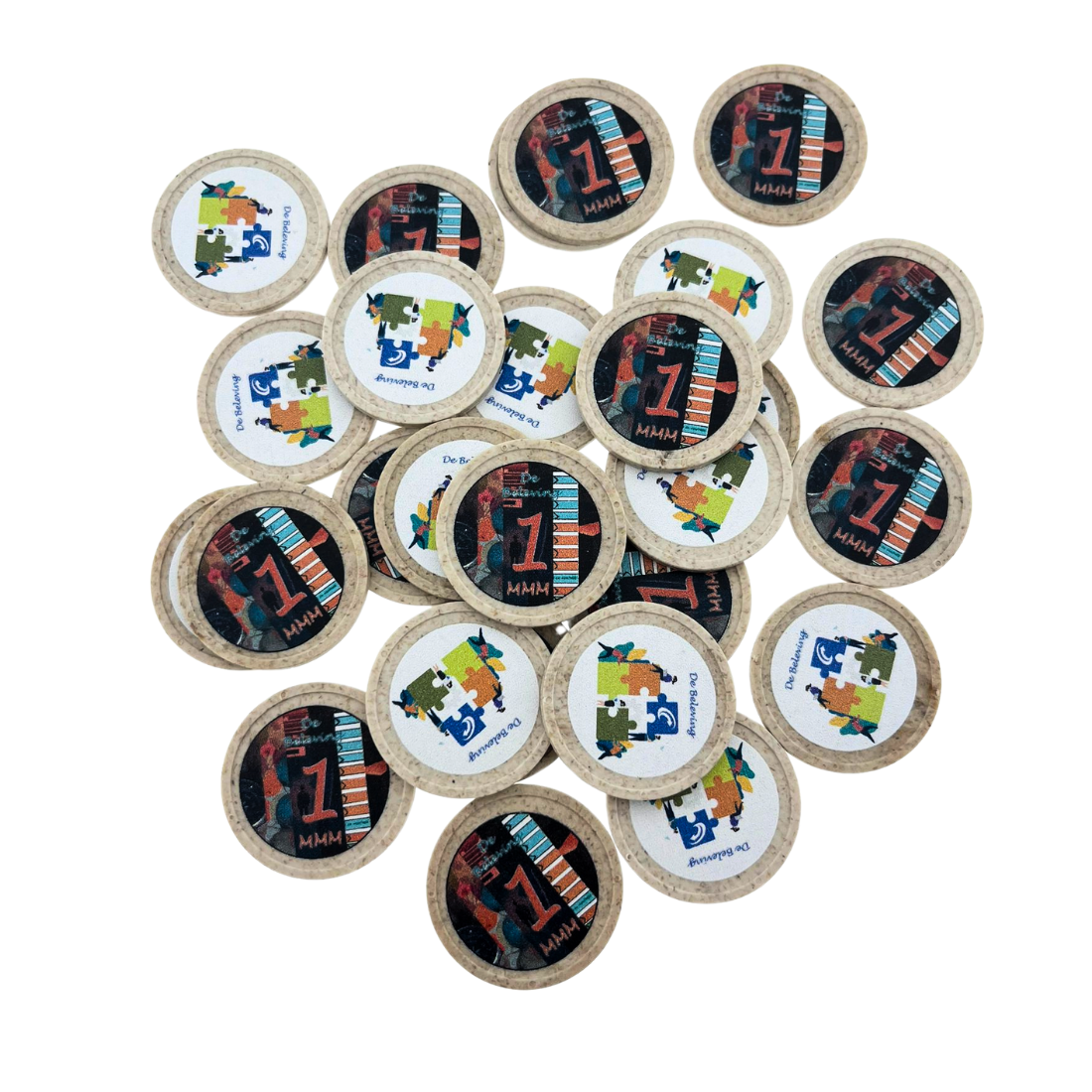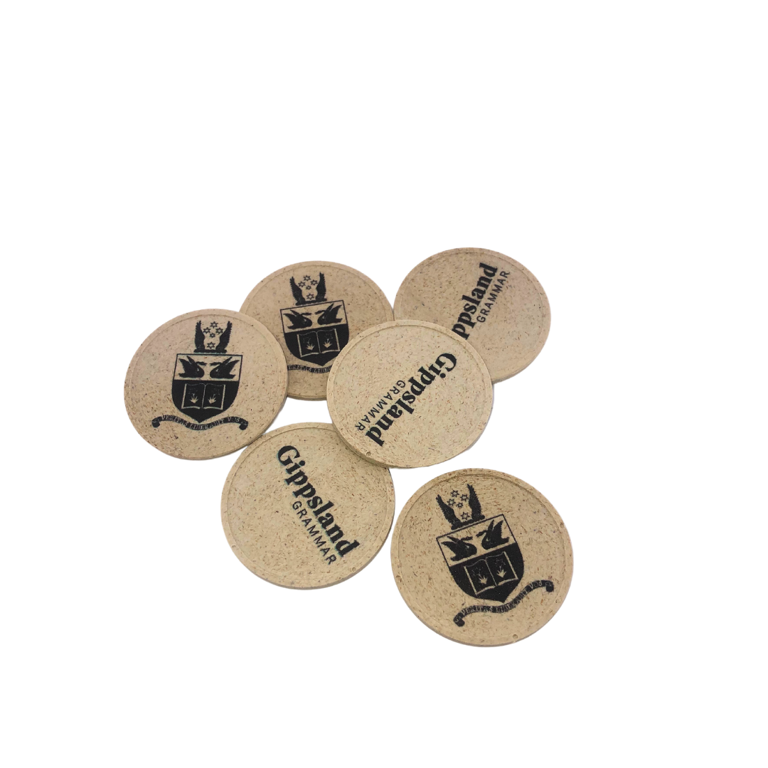 Houtvezel munten Ø29mm met jouw eigen ontwerp - per 100 stuks