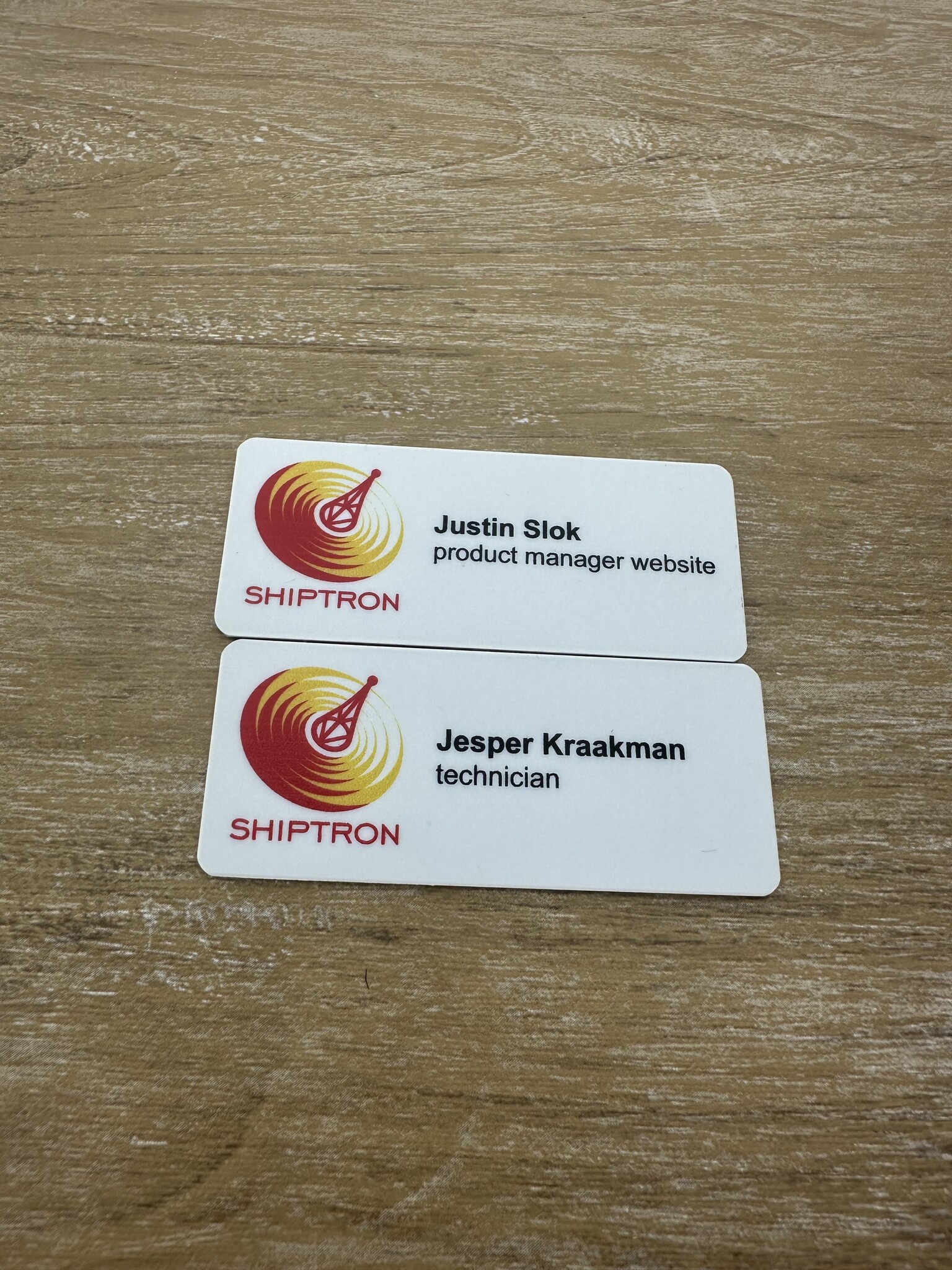 Personaliseer de naambadge met een eigen ontwerp in full colour. Plaats er bijvoorbeeld een (bedrijfs)logo, illustratie, naam of functietitel op. Stuur je gewenste ontwerp, samen met je ordernummer, naar [email protected]. Je ontvangt altijd eerst een digitaal voorbeeld (artwork) ter goedkeuring. Bestel je meerdere naambadges met naam? Lever de namen dan onder elkaar aan in een Excel-bestand.