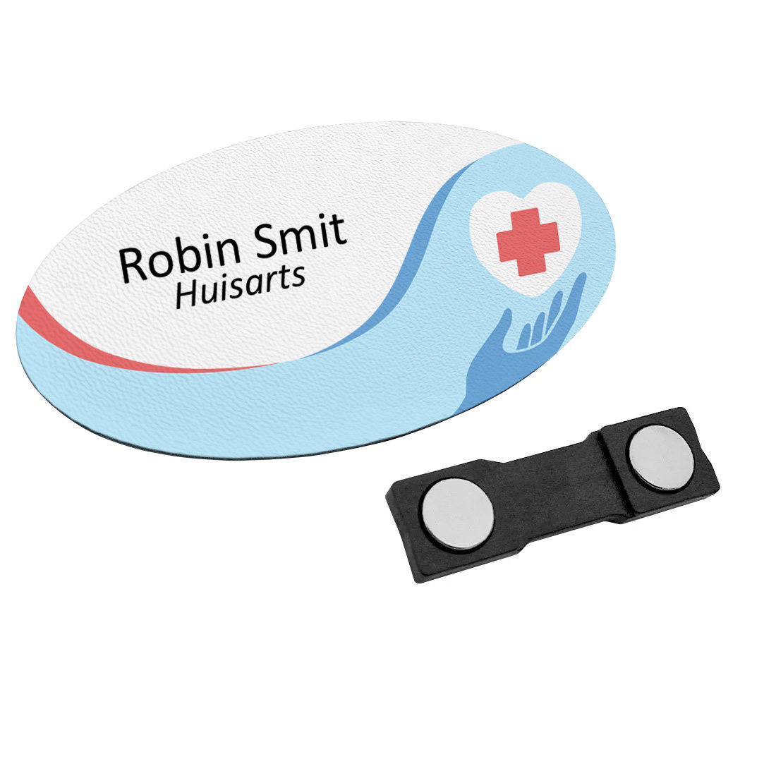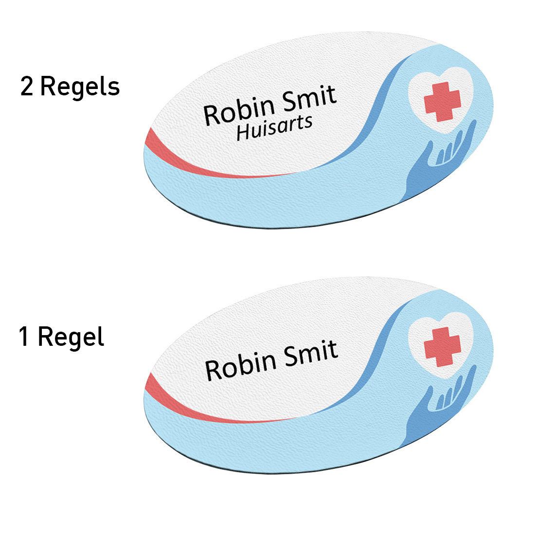 Deze ovale naambadge is speciaal ontworpen voor professionals binnen en rond de zorg. Denk aan artsen, huisartsen, verpleegkundigen, zorgverleners, ziekenhuispersoneel en bijvoorbeeld ook thuiszorgmedewerkers. Zo maak je jezelf eenvoudig kenbaar. Cliënten zien in één oogopslag wie je bent en kunnen je gemakkelijk aanspreken.