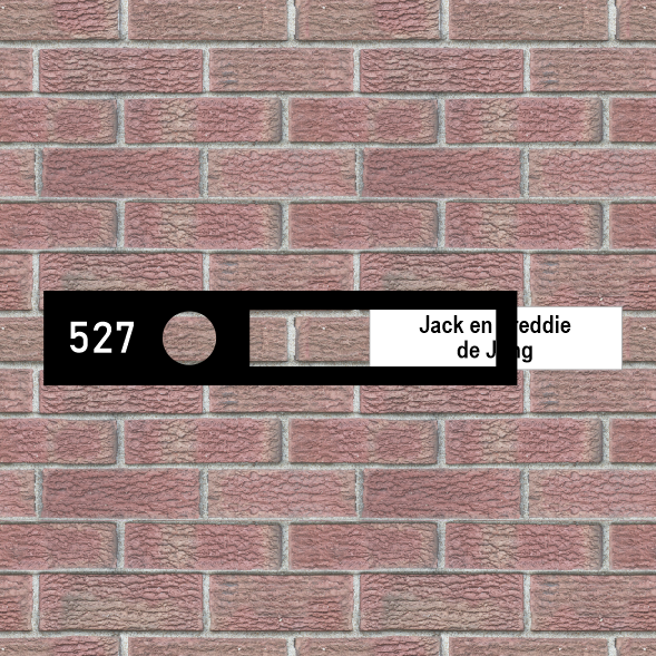 | Lettertype: | Huisnummer wordt gegraveerd in Bahnschrift |