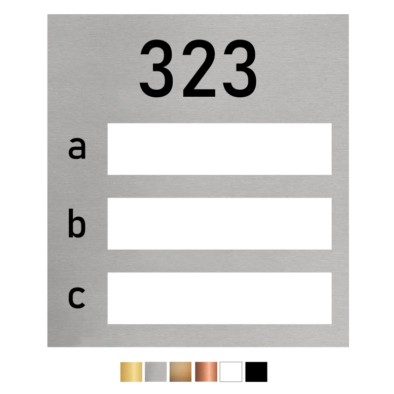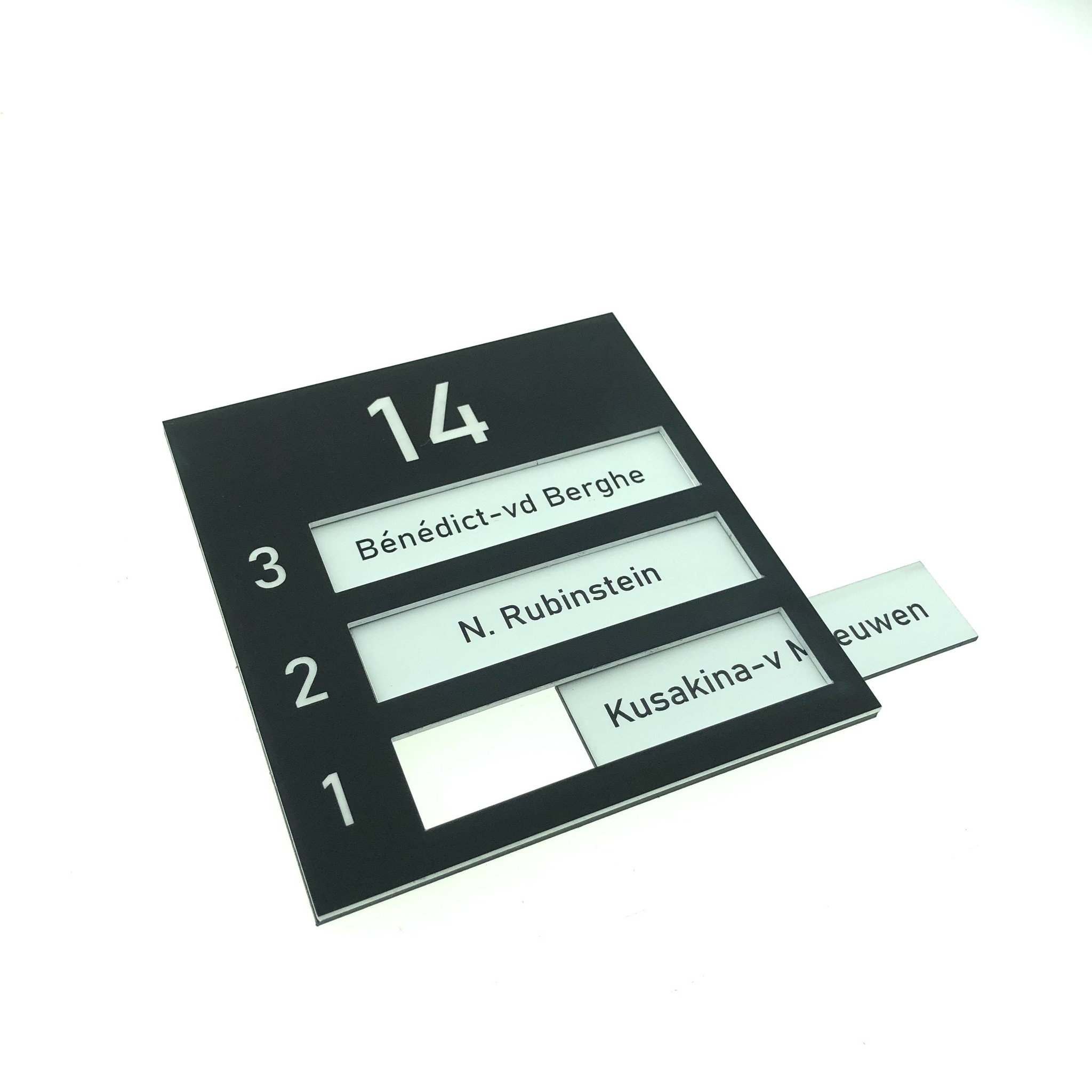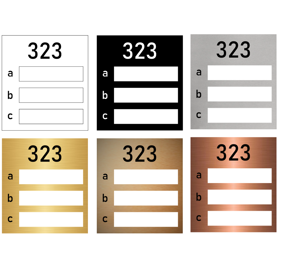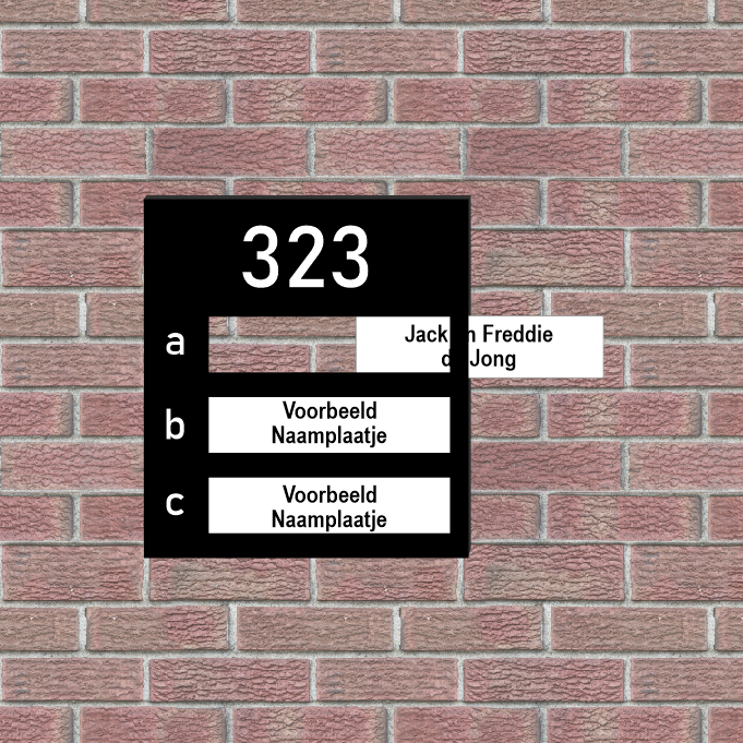 De naamplaathouder wordt gemaakt van UV-bestendig Acrylaat (kunststof) en kan gebruikt worden in alle weersomstandigheden. Naast het huisnummer dat groot bovenaan gegraveerd wordt, kunnen er naast de naamplaatjes ook extensies worden weergegeven, zoals a, b, c of 1, 2, 3.