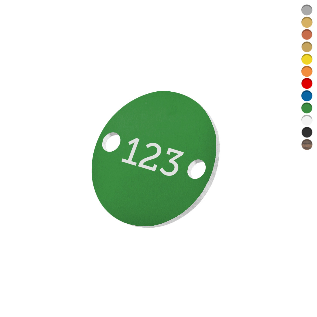 Het ronde nummerplaatje is gemaakt van kunststof en verkrijgbaar in verschillende kleuren en maten. Elke maat is 1,6 mm dik. Het kunststof is UV- en weersbestendig, waardoor het zowel binnen als buiten gebruikt kan worden. Uniek aan dit plaatje is dat beide zijden gekleurd zijn. Het plaatje is voorzien van een gat aan zowel de linker- als rechterzijde, elk met een diameter van 4 mm. Dankzij deze gaten kun je het plaatje eenvoudig ophangen aan een schroef, spijker of haakje. Het nummerplaatje wordt per stuk verkocht.