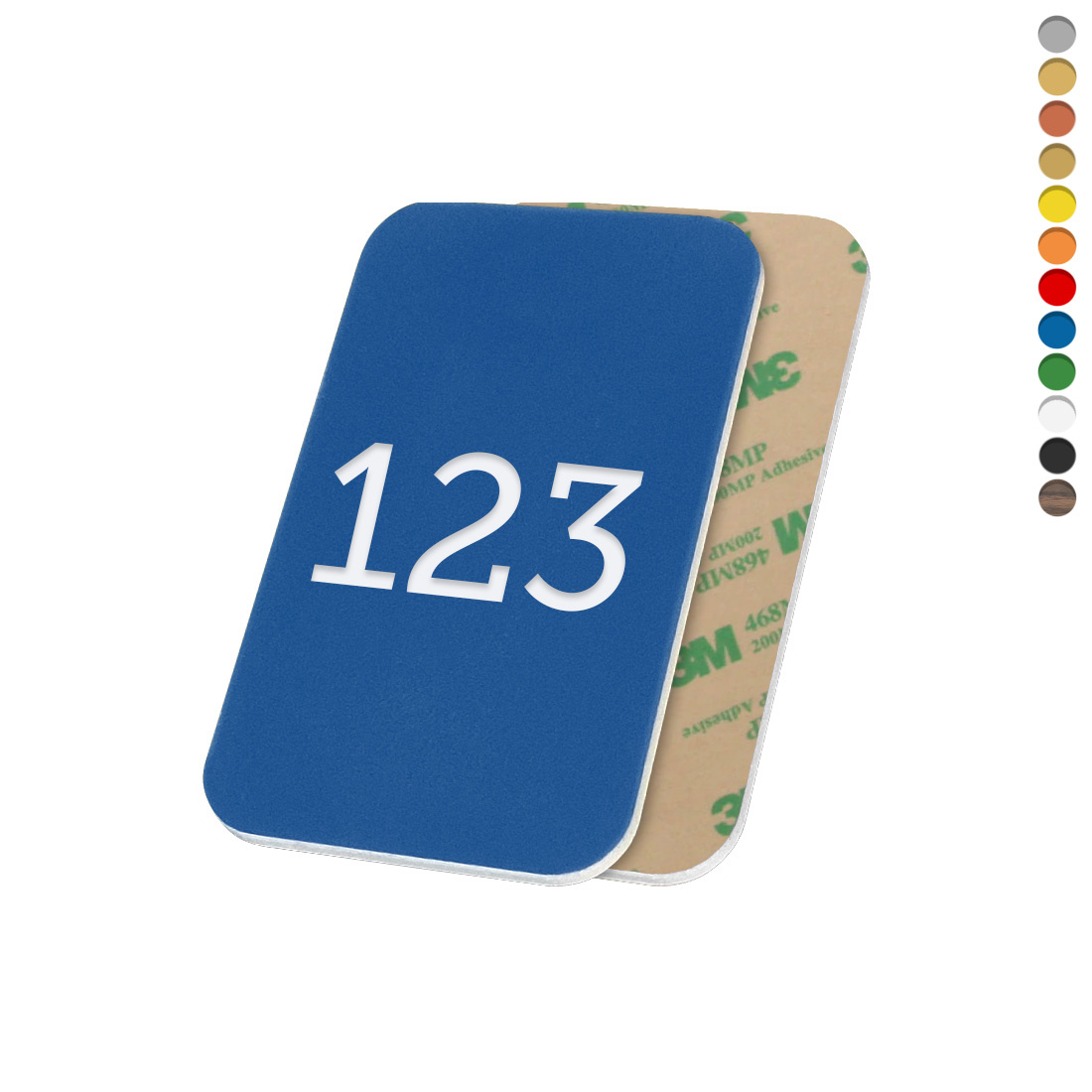 Het rechthoekige nummerplaatje is gemaakt van kunststof en verkrijgbaar in verschillende maten. Elke maat is 1,6 mm dik. Het kunststof is UV- en weersbestendig, waardoor het zowel binnen als buiten gebruikt kan worden. Het plaatje is voorzien van tape aan de achterzijde voor een snelle en eenvoudige bevestiging. Per stuk verkrijgbaar.