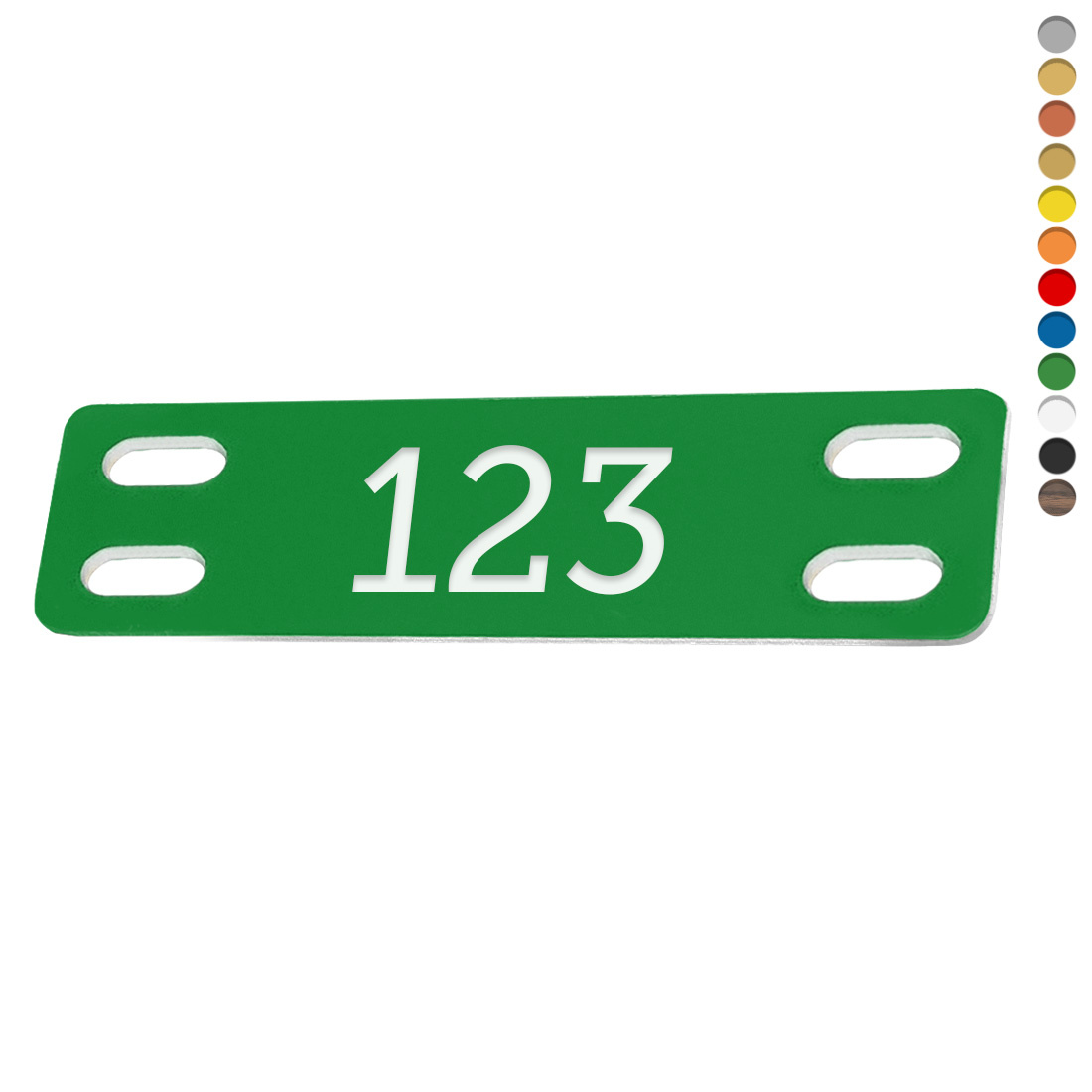We graveren de nummerplaatjes met een eigen nummering. Je kunt elke gewenste nummering opgeven, zoals: