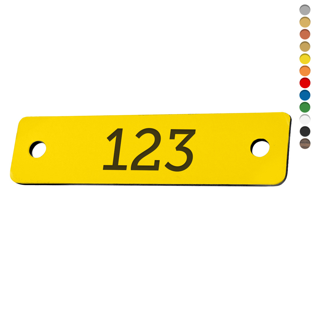 We graveren de nummerplaatjes met een eigen nummering. Je kunt elke gewenste nummering opgeven, zoals: