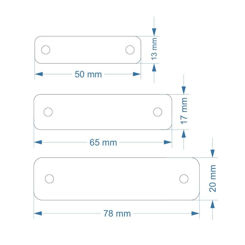 | Maat: | 50 x 12,8 mm | 65 x 16,6 mm | 78 x 20 mm |