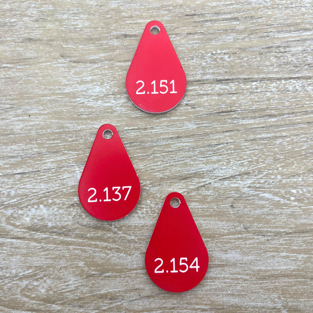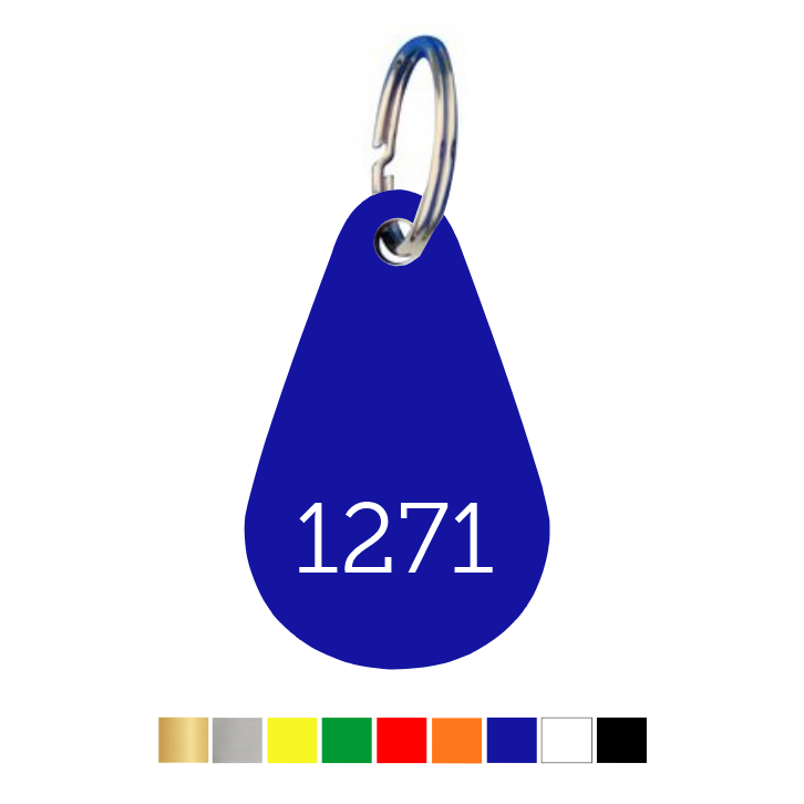 Kunststof sleutellabel druppel met nummer - per stuk