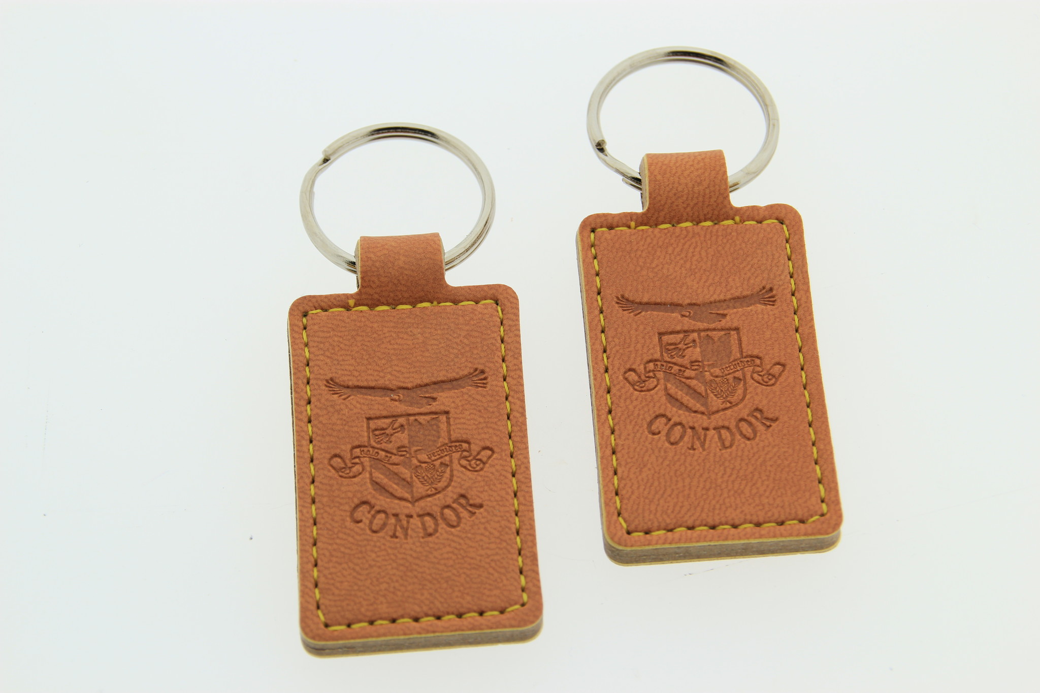 Leren of Kunstleren sleutelhangers 30x80mm met uw brandlogo.