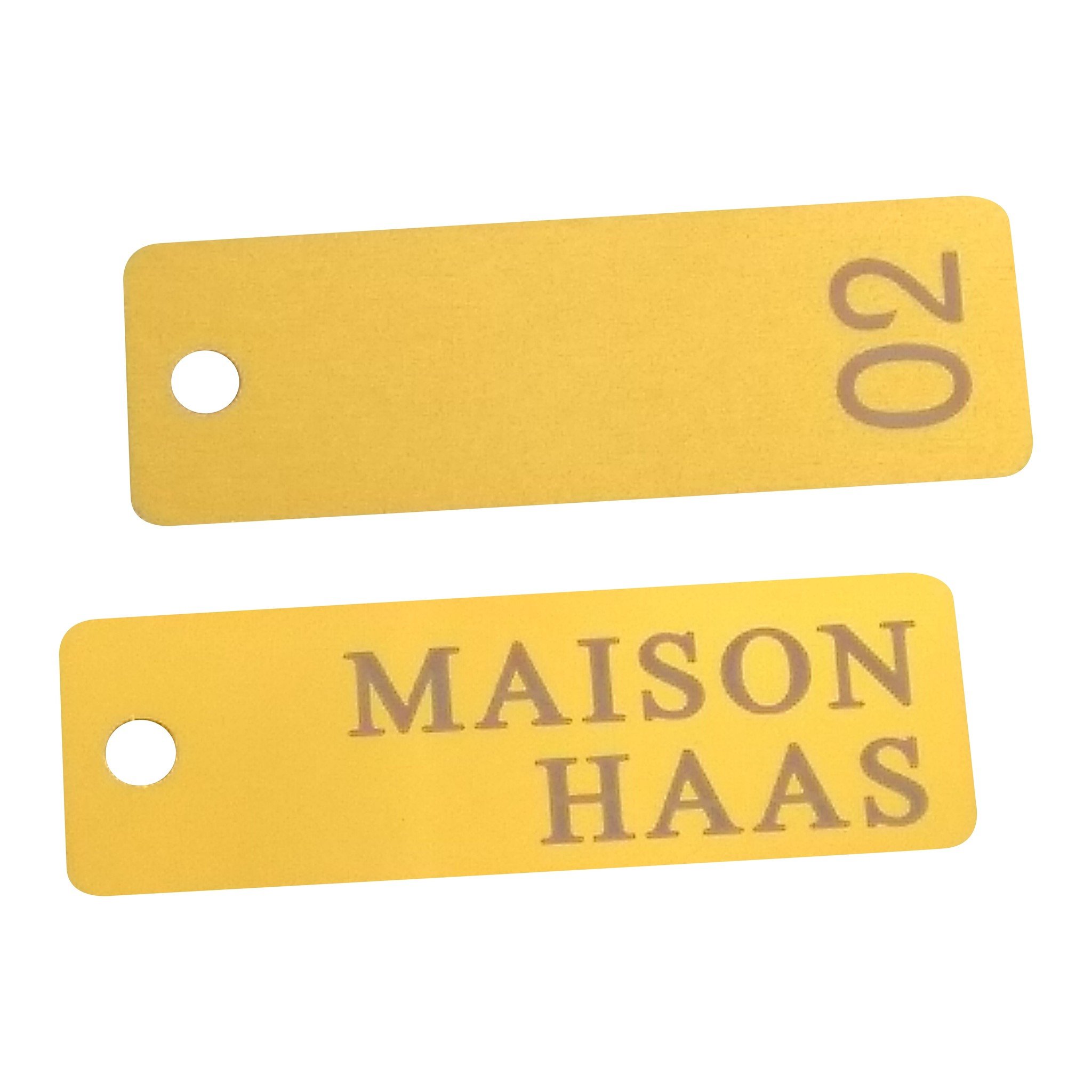Sleutellabels Goudkleurig Elox Aluminium 70x25mm met 1 gat volgens Maison Haas Hunstix design.