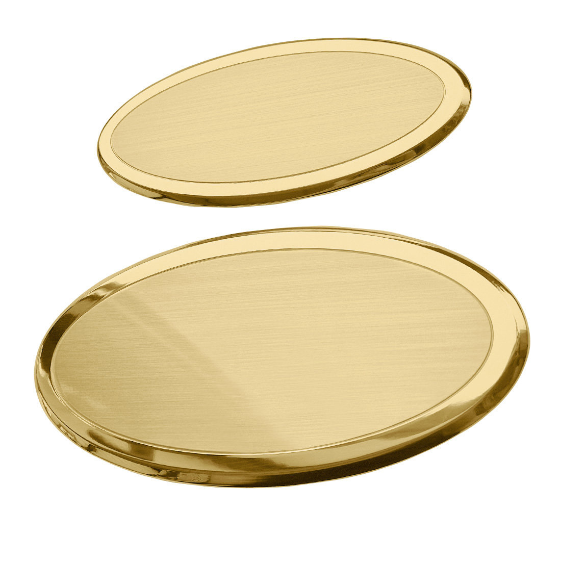 De messing Ovalia naambordjes zijn verkrijgbaar in de maten 125 x 60 mm en 145 x 75 mm en hebben een dikte van 3 mm. Het bordje van 125 x 60 mm heeft een gewicht van 141 gram en het bordje van 145 x 75 mm heeft een gewicht van 206 gram. Ze zijn gemaakt van hoogwaardig, glanzend messing en hebben een luxe uitstraling.