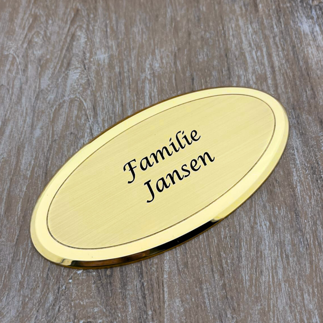 Messing naambordje Ovalia met eigen regels tekst - per 1 stuk
