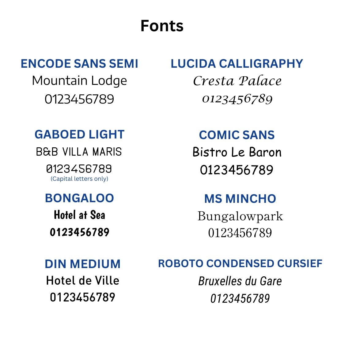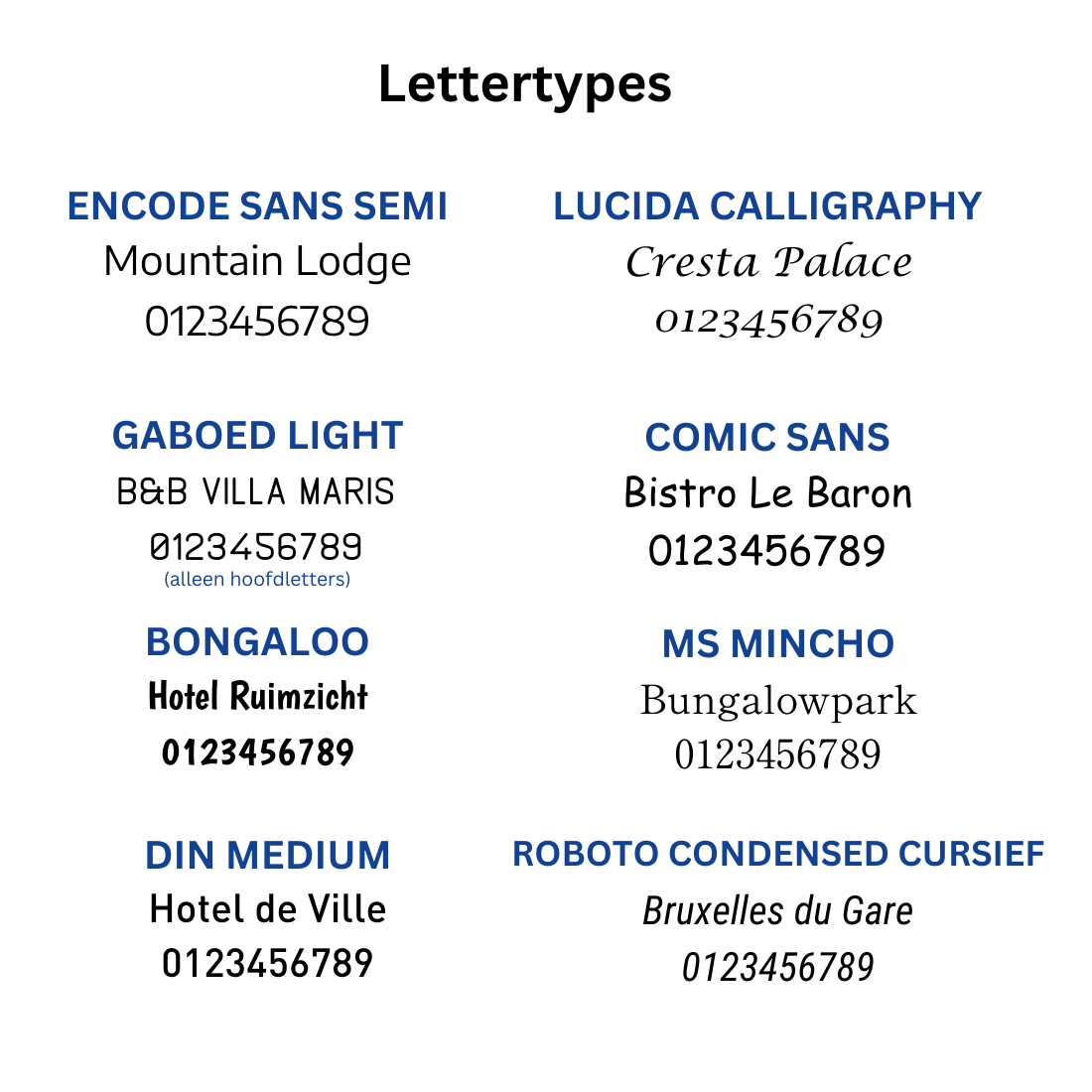Personaliseer de hotel sleutelhanger met maximaal 3 karakters, één regel tekst op de voor- en/of achterzijde, of een eigen logo. Kies het gewenste lettertype uit onze lettertypekaart. Geef in het opmerkingenveld aan welke karakters en/of tekst je gegraveerd wilt hebben. Stuur je ontwerp als logo of illustratie, samen met je ordernummer, naar [email protected]. De gravering wordt in zwart aangebracht. Bestel je meerdere sleutelhangers? Lever dan de gewenste karakters of teksten onder elkaar aan in een Excel-bestand en mail dit, samen met je ordernummer, naar ons.