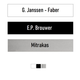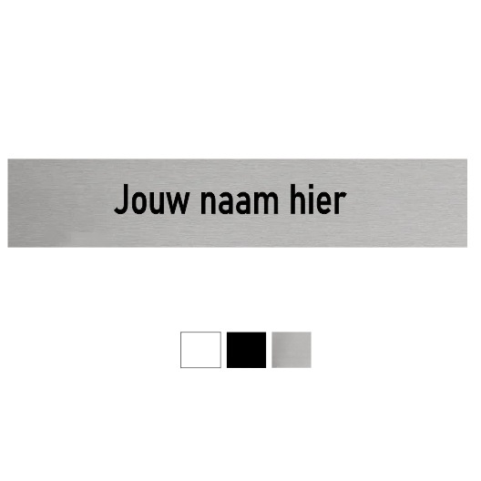 | Kleuren: | Naamplaatjes in RVS-look (zilver), wit of zwart. |