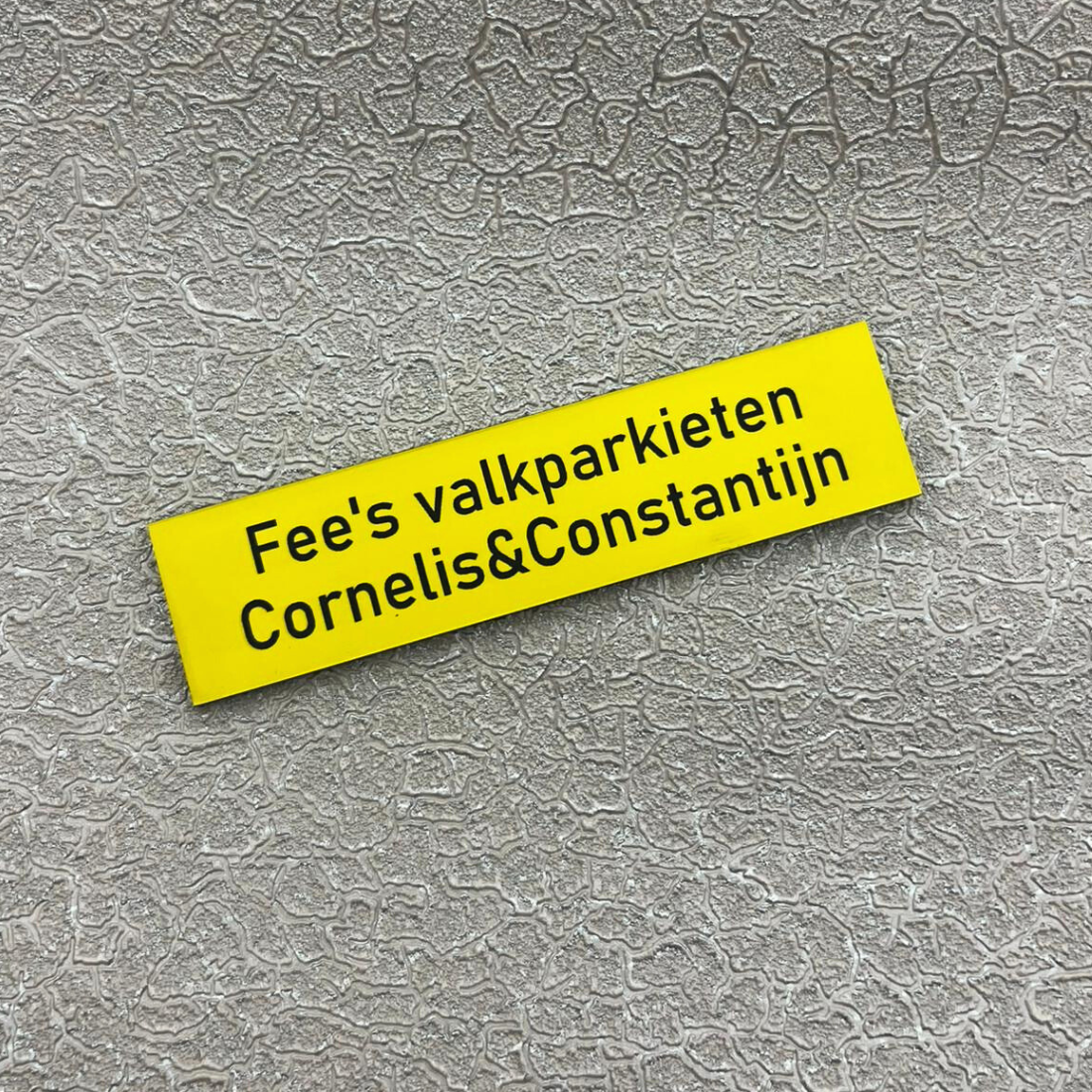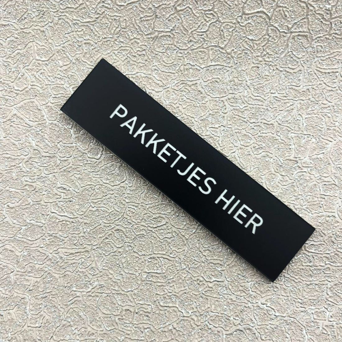 Plaatjes worden gemaakt van UV-bestendig Acrylaat (kunststof) en kan gebruikt worden in alle weersomstandigheden. Door de tape aan de achterzijde, kan het naamplaatje direct worden bevestigd op de voordeur of brievenbus.