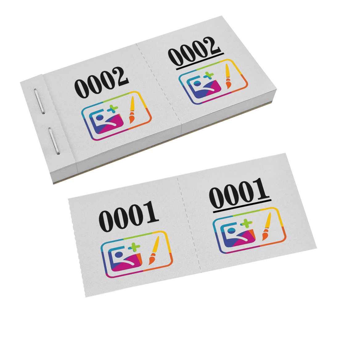 Personaliseer de loten met je eigen logo in full color. De nummers zijn standaard in het zwart gedrukt, voor goede zichtbaarheid. Stuur het logo of de illustratie die je graag op de loten wilt laten bedrukken, samen met je ordernummer, naar [email protected]. In totaal ontvang je 1000 loten met hetzelfde logo, verdeeld over 20 boekjes van elk 50 dubbelnummers.