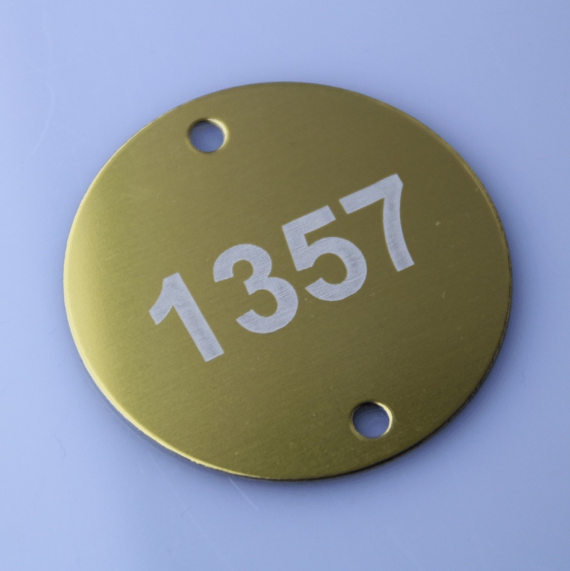 Nummerplaatjes Aluminium Gekleurd Rond 1mm dik met witte gravering en 2 gaatjes