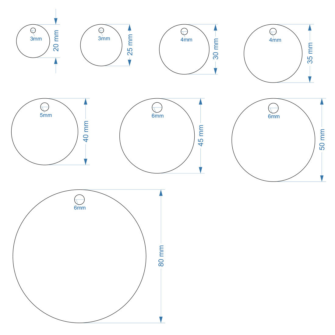 | Maat: | 20, 25, 30mm / 1mm dik | 35, 40, 45, 50, 60, 80 / 1.5mm dik |