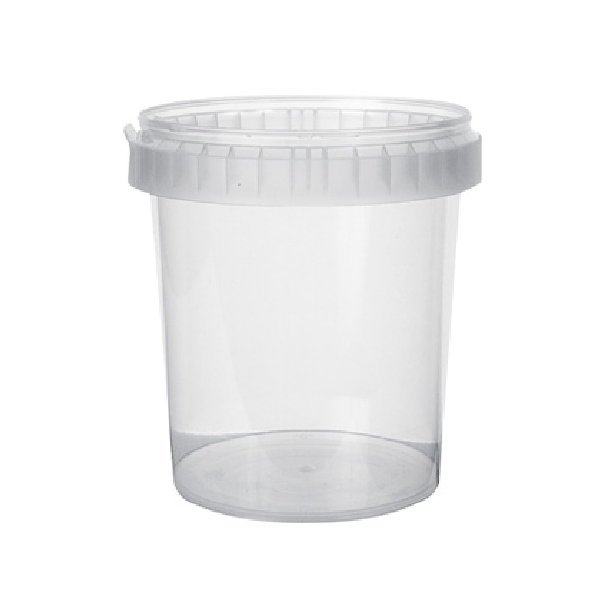 De transparante opbergemmer wordt geleverd met deksel en is stapelbaar. De emmer is goed voor een volume van c.a. 500 munten.