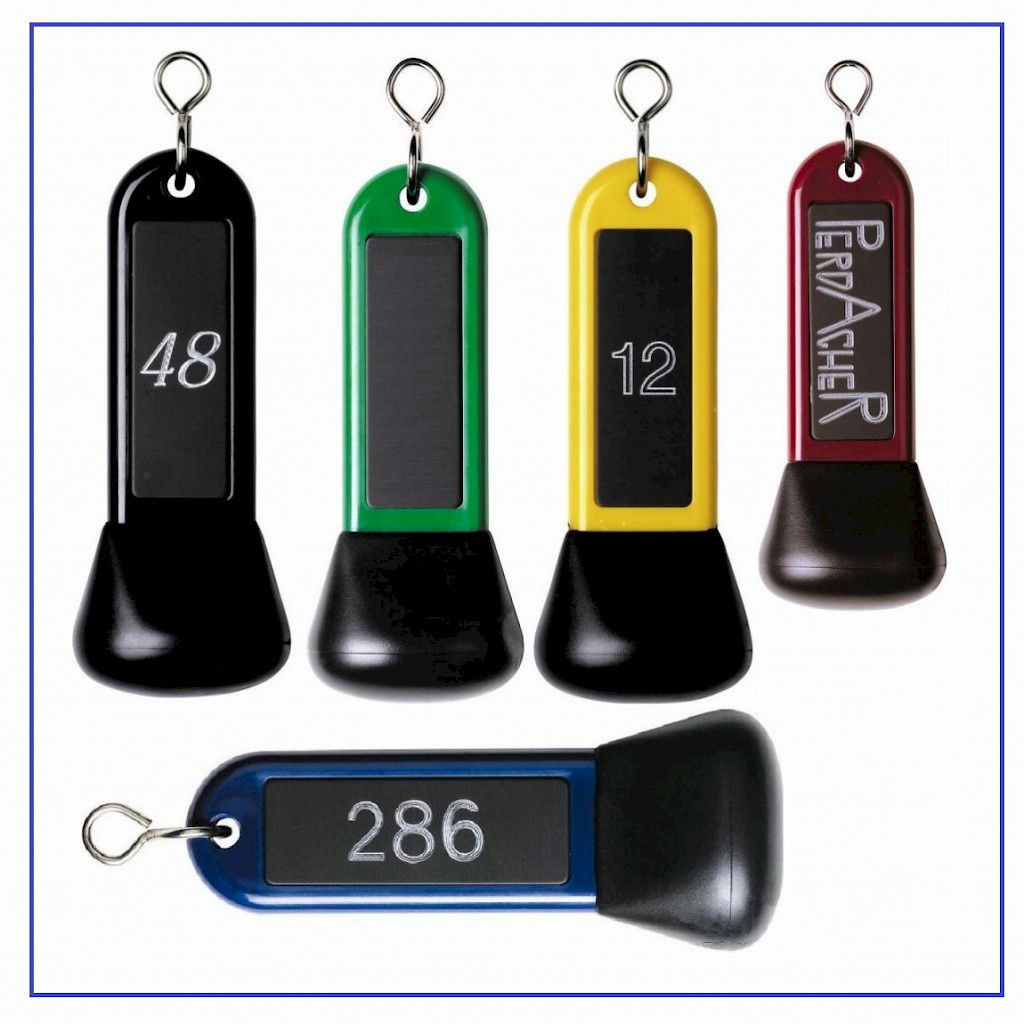 De PECKHAM is een serie van kleurrijke sterke en harde kunststof sleutelhangers in groot formaat.