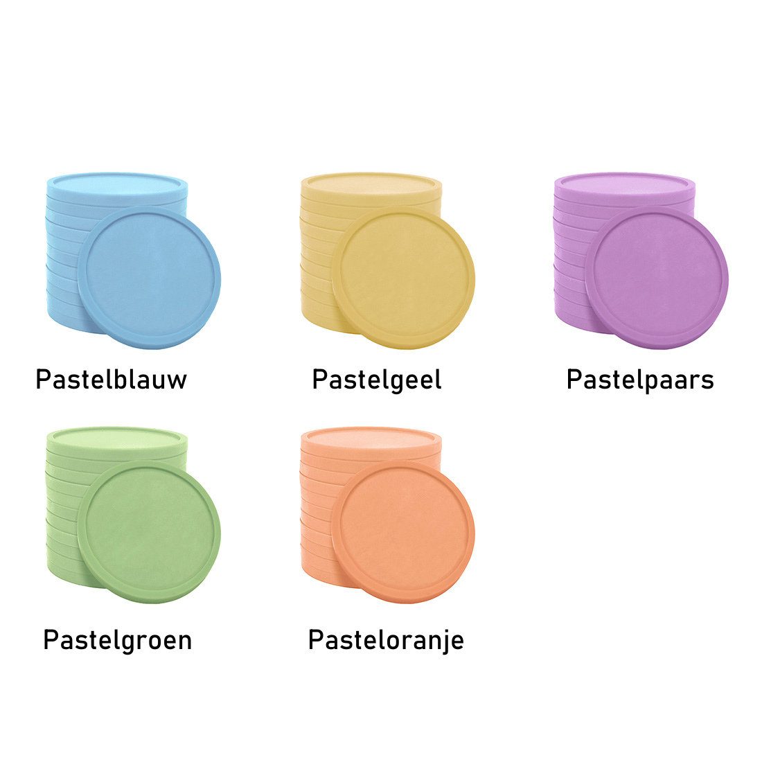 Onze munten worden geleverd in een stevige, afgesloten plastic zak. Bestel je meerdere munten in dezelfde kleur en uitvoering? Dan verpakken we deze samen in één zak. Om het uitgeven en organiseren van munten soepel te laten verlopen, kun je gebruikmaken van kunststof telbakken.