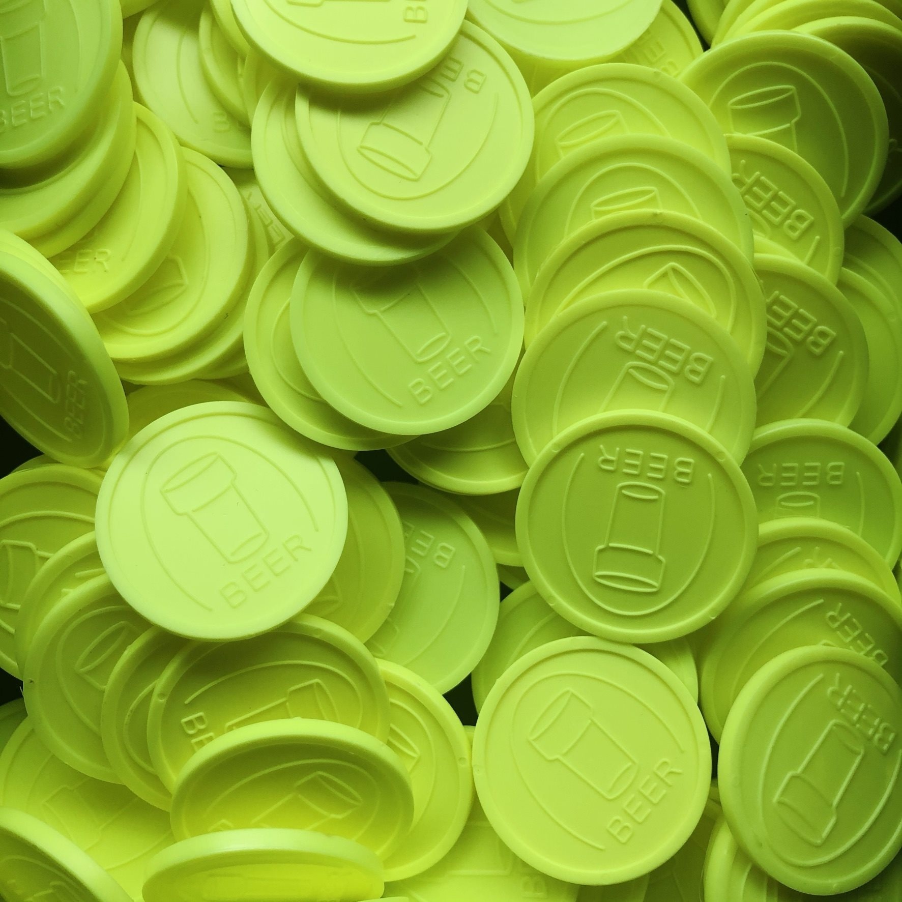 De gekleurde reliëfmunten zijn gemaakt van kunststof en hebben een doorsnede van 29 mm en een dikte van ongeveer 2,35 mm. De munten zijn voorzien van een opstaande rand en hebben aan beide zijden een herkenbaar bierglas icoon met daaronder de tekst Beer (bier). Dankzij het universele design zijn de munten internationaal inzetbaar. De bier reliëfmunten zijn verkrijgbaar in meerdere opvallende kleuren en worden geleverd per 250 stuks.