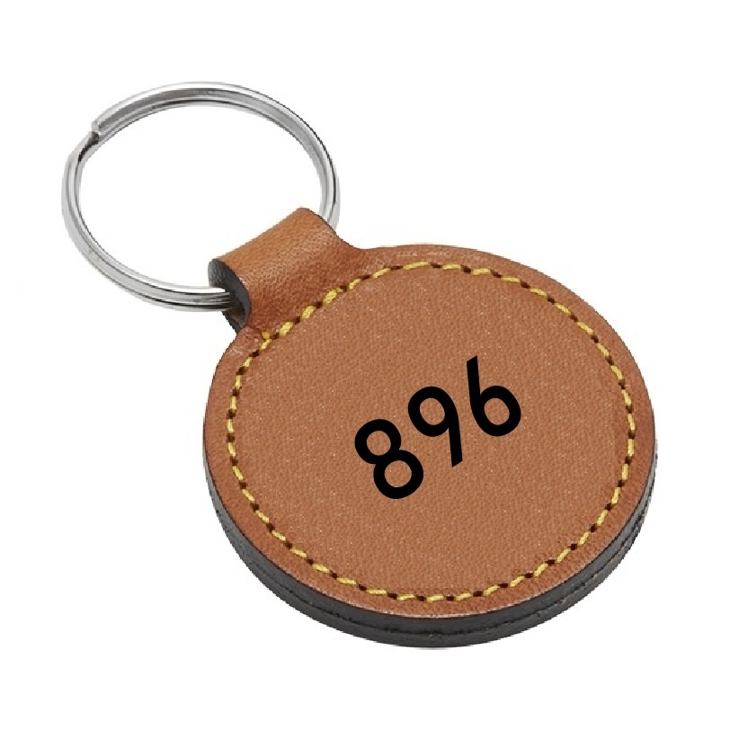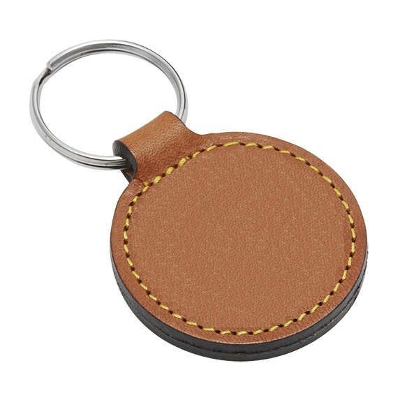 De sleutelhanger is zowel verkrijgbaar in leer als in kunstleer in het licht bruin. Er is ruimte om aan beide zijden van de sleutelhanger een tekst, een nummer, een kenteken, een merk of een logo in te drukken. De kleur van het stiksel is zoals op de foto