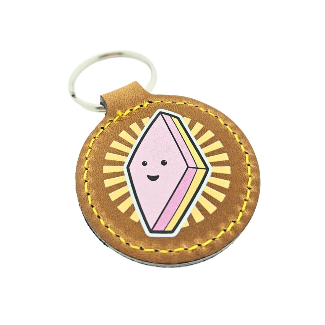 De ronde sleutelhanger die we hier aanbieden is ca. Ø45 x 75mm, inclusief de sleutelring.