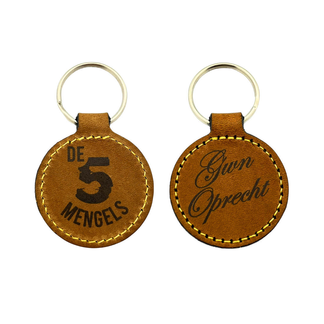 Bedrukking op sleutelhangers van leer of kunstleer.