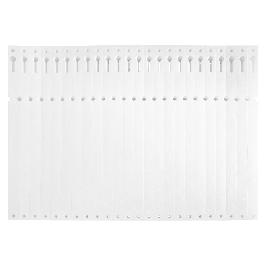 Blanco Tyvek sleufetiketten 220x12,7mm zigzag gevouwen voor matrixprinters in wit - per 1000 etiketten