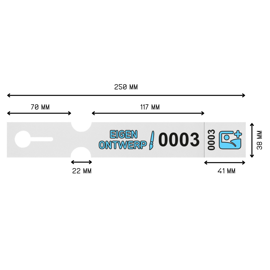 Sleufetiketten met eigen ontwerp en nummering 250x38mm met afscheurstrook - per 200 etiketten