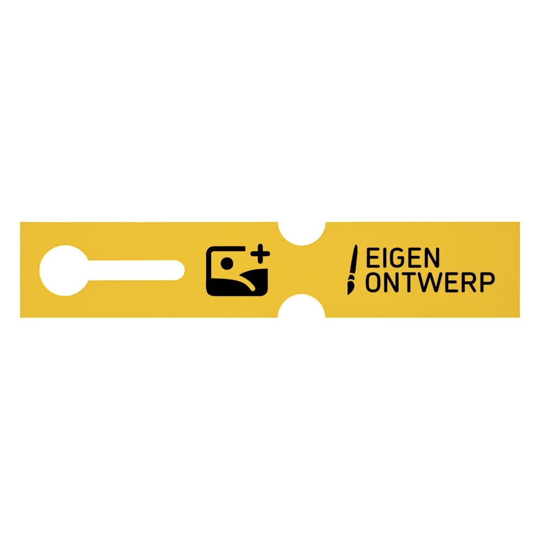 Je kunt de etiketten eenvoudig online personaliseren door op het gewenste kleurbolletje te klikken en vervolgens op de groene button "Personaliseren" te klikken. Vanuit daar kun je jouw gewenste kleur sleufetiket bewerken met bijvoorbeeld een tekst, logo of illustratie. Let erop dat het etiket alleen enkelzijdig zwart bedrukt wordt. Kom je er niet uit? Geef jouw wensen aan ons door, en wij maken een digitale proefdruk ter goedkeuring. Neem hiervoor contact met ons op via [email protected].