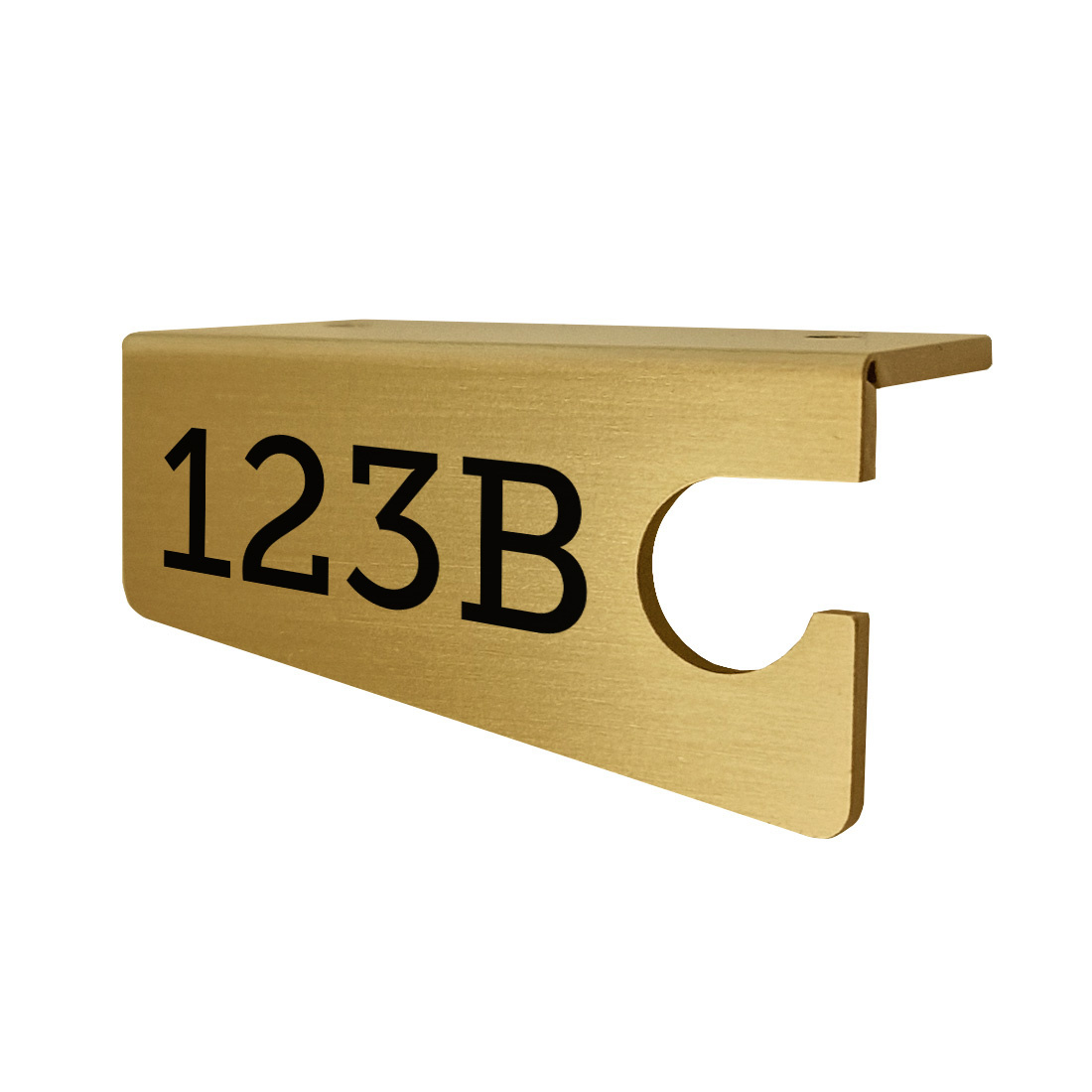 De sleutelhaak heeft afmetingen van 45 x 22 mm en een dikte van ongeveer 2 mm. Hij is gemaakt van gesatineerd messing met een goudkleurige afwerking. Dankzij de twee ophanggaten van circa Ø3 mm kan hij eenvoudig worden bevestigd onder een plank of in een vakkenkast. Let op: bijpassende schroeven worden niet meegeleverd.